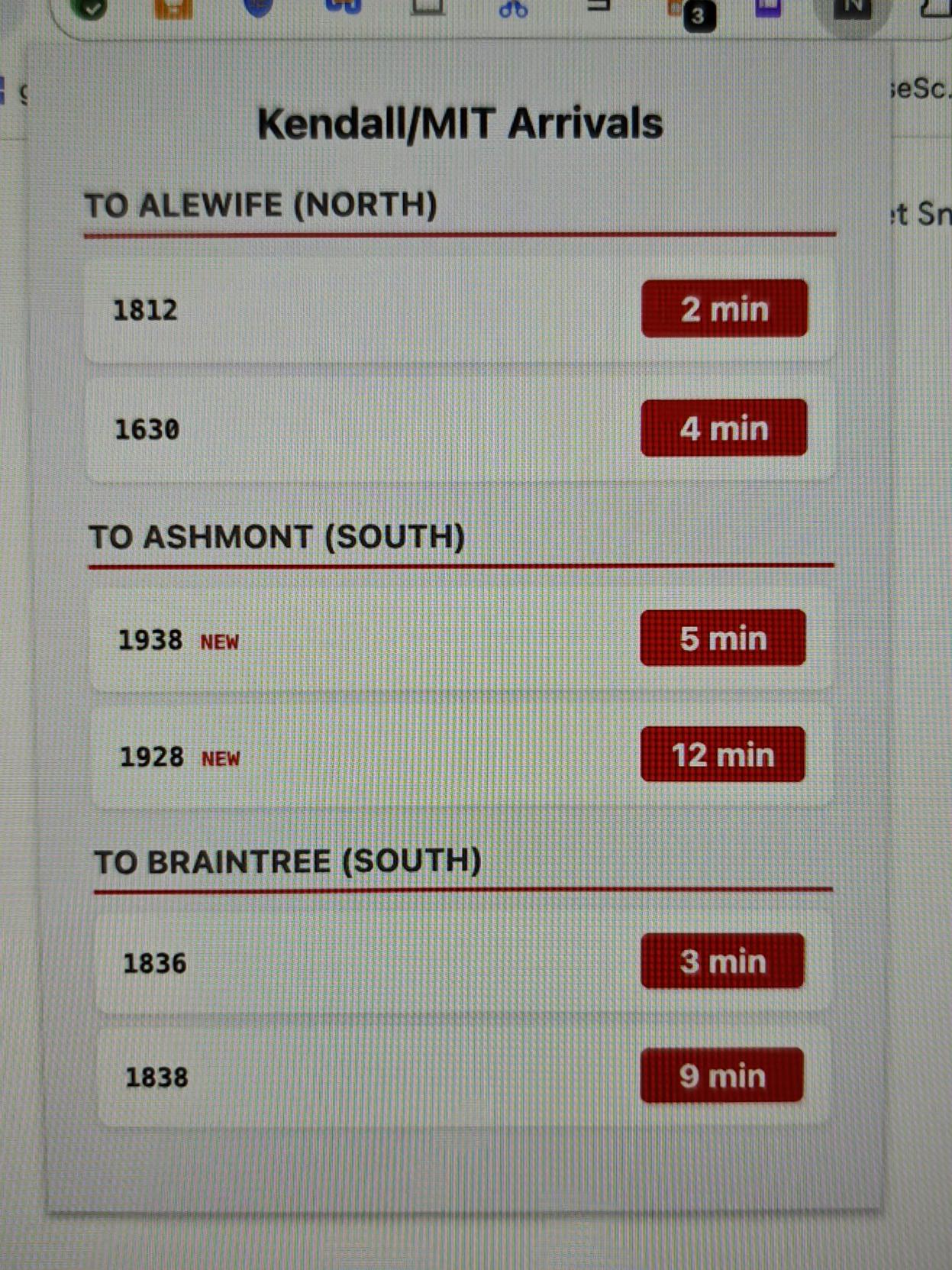 I spent 15 mins vibe coding with Google Gemini and made my first chrome extension showing train arrivals at Kendall/MIT......