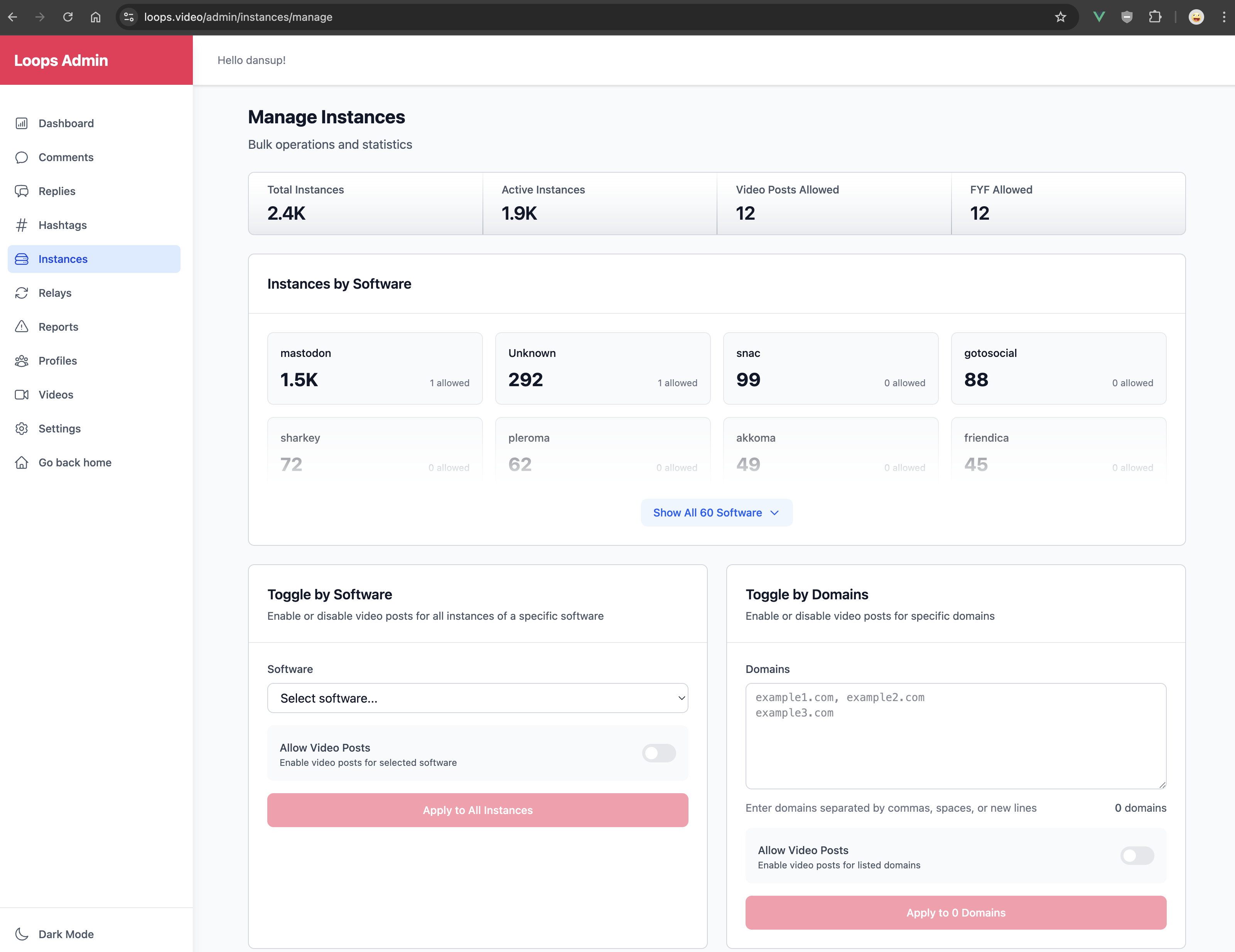 If you want to know about Pixelfed (https://pixelfed.org) or Loops (https://loops.video) check out their respective websites and send your props to Dan!