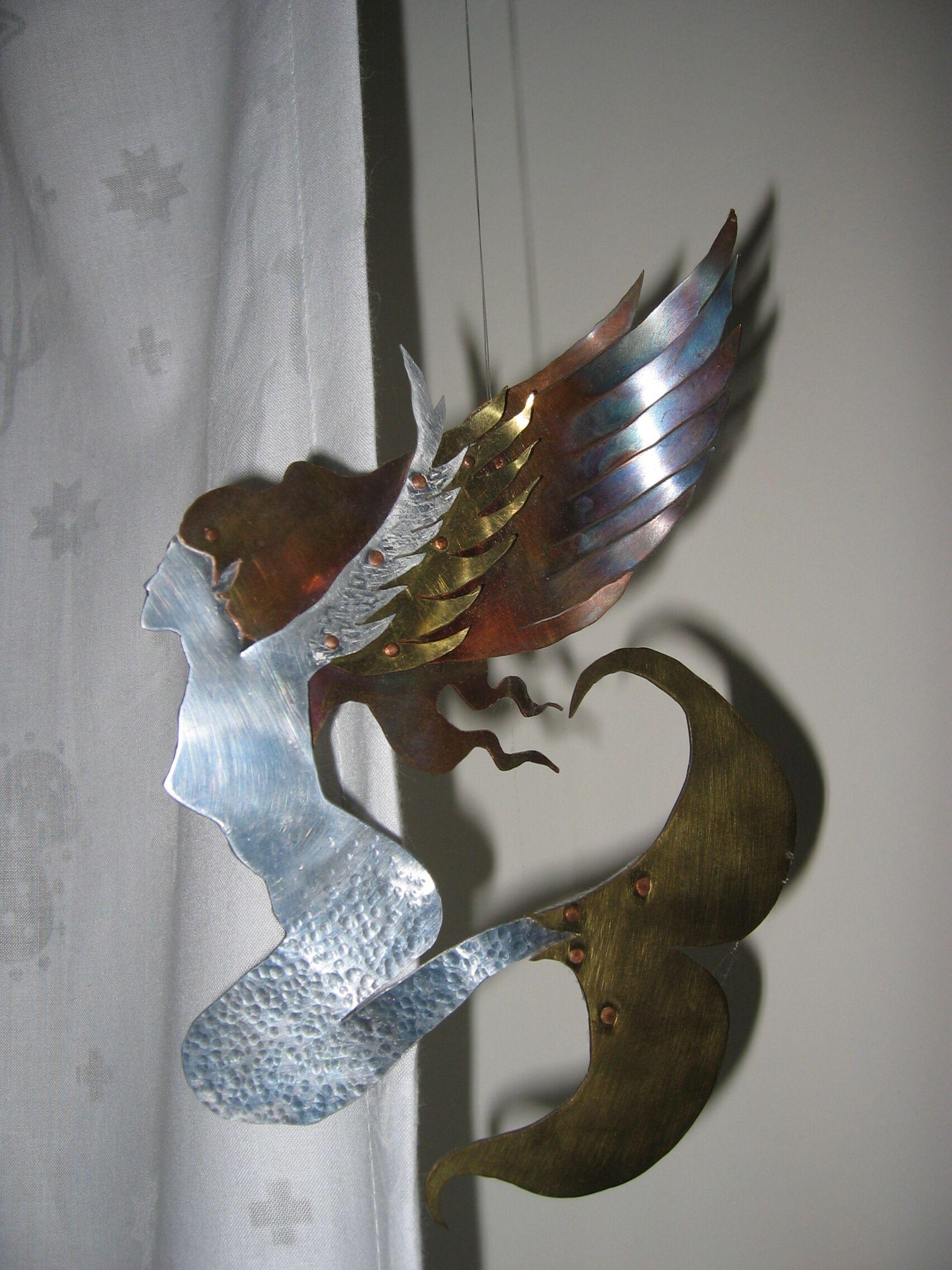 My high school had an amazing 3D art program, and I learned metal work and riveting. This is a winged mermaid piece I made! Was super fun changing the color of the copper with heat, and I remember cutting out each piece was such a pain! It still hangs in my room.