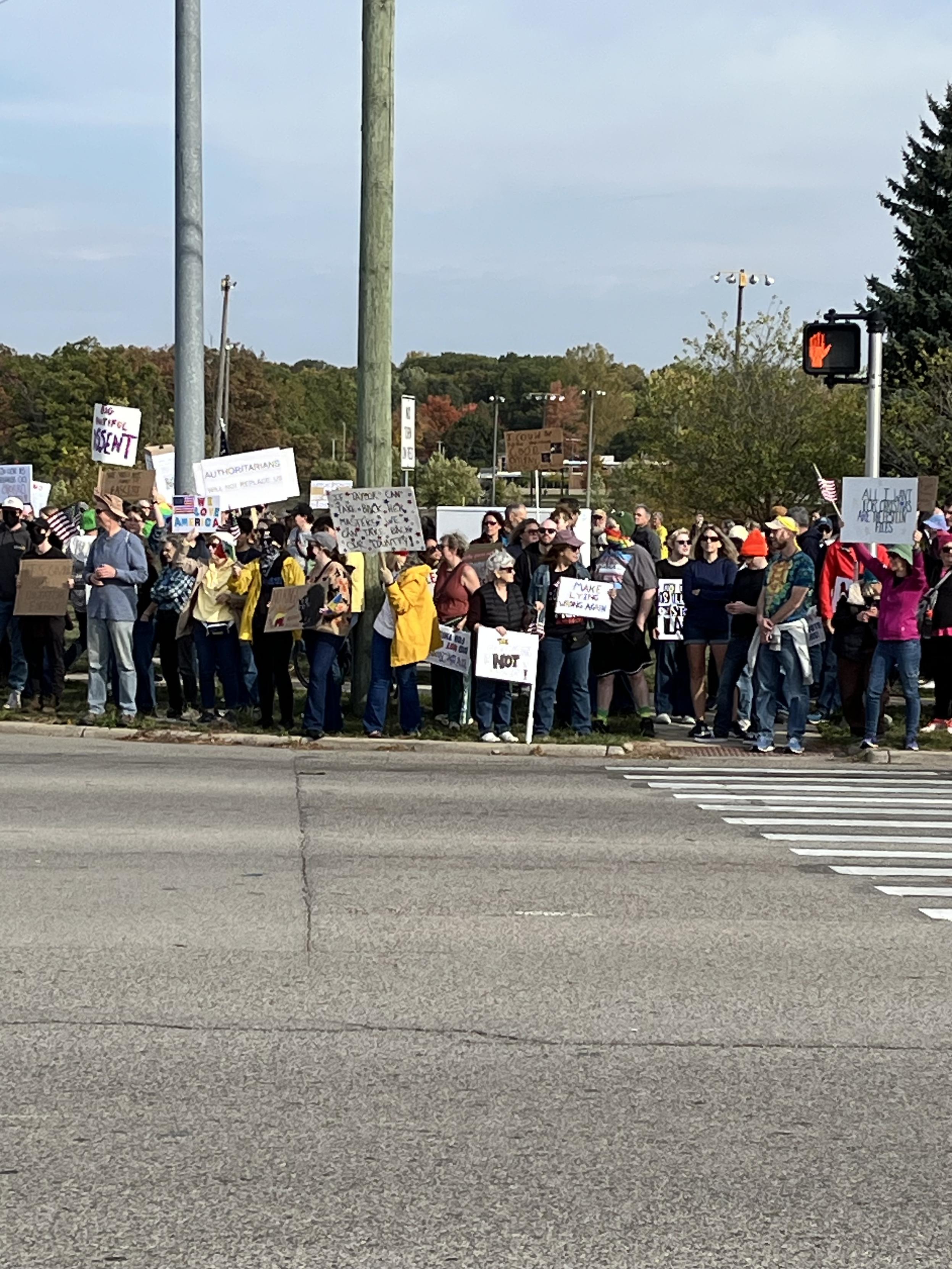 Ann Arbor turned out for the No Kings protest. All along Stadium Blvd, for miles, there were thousands of people protesting and thousands of people driving to University of Michigan's stadium for a home football game.