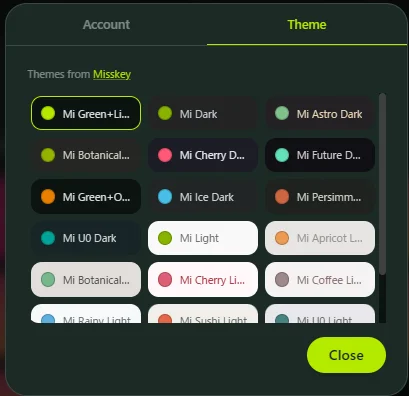 - Misskey公式の19テーマに対応した見た目の切り替え