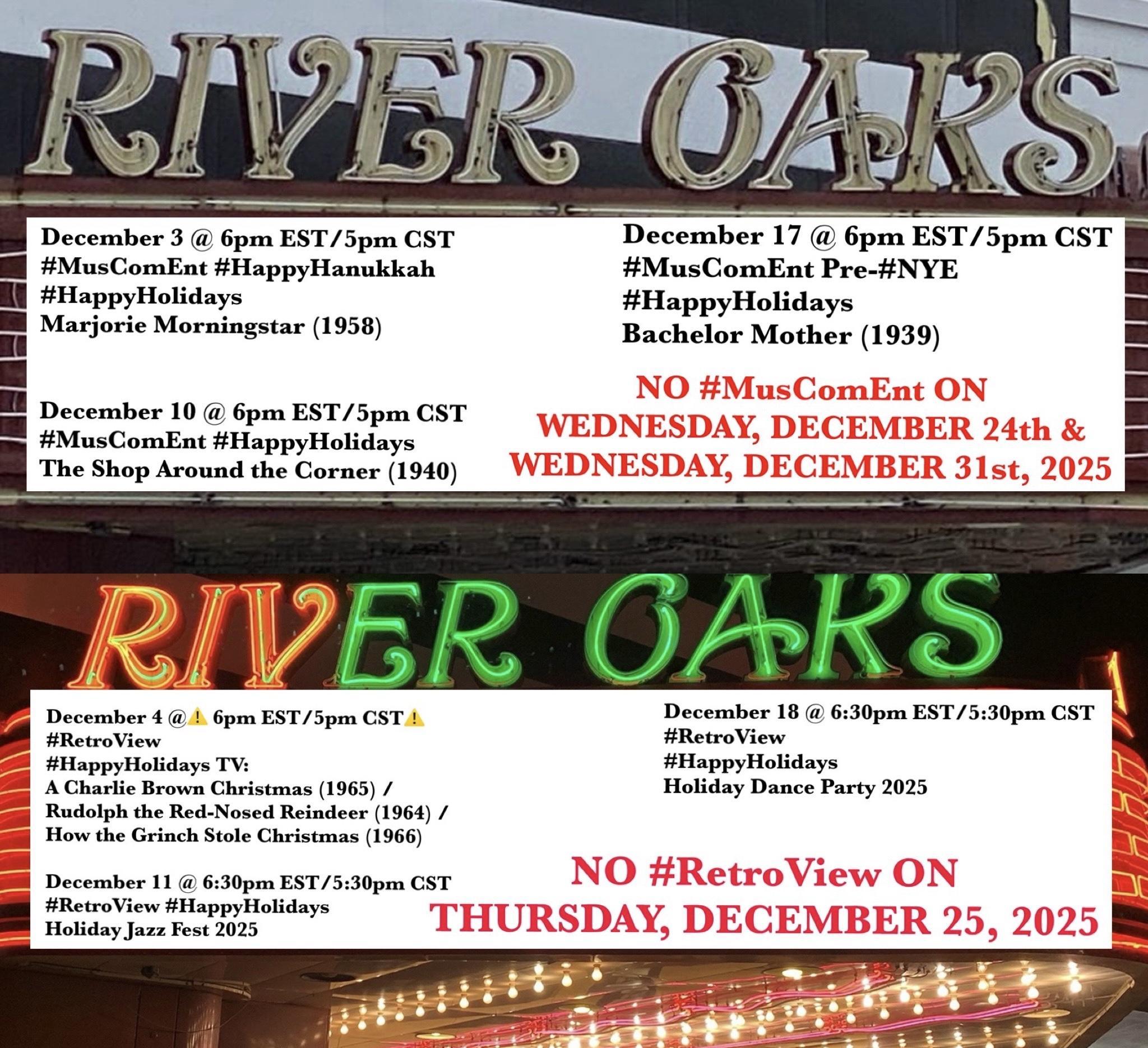 Just a reminder: NO #MusComEnt or #RetroView this week. I hope everyone has a safe & wonderful holiday. This hasn’t been the best for me but getting to share things that I love with y’all has been a majorly sustaining bright spot. In the meantime, check out these mega mixes of Holiday Classical Music (https://youtube.com/playlist?list=PL2Zslnc5XTftpeG3gfWMj9I6oiDXmMYKJ&si=PTm1WwRiVGgoUeFk) , Holiday Surf Rock & Dance/Pop music (https://youtube.com/playlist?list=PL2Zslnc5XTfuv5Zm9kJRuBrUjlKaKC_dq&si=wf6t2wK4o3i0yeM_) & #Jazz (https://youtube.com/playlist?list=PL2Zslnc5XTfvY419q-Q_6NL2IyEnxNJZv&si=rvstGxlAiBHPMldC) AND YuleLogs (https://youtube.com/playlist?list=PL2Zslnc5XTft75Z7wjEzg-4g15cL6AKwY&si=RadJfkOECHFlYUJ0) I love y’all💕