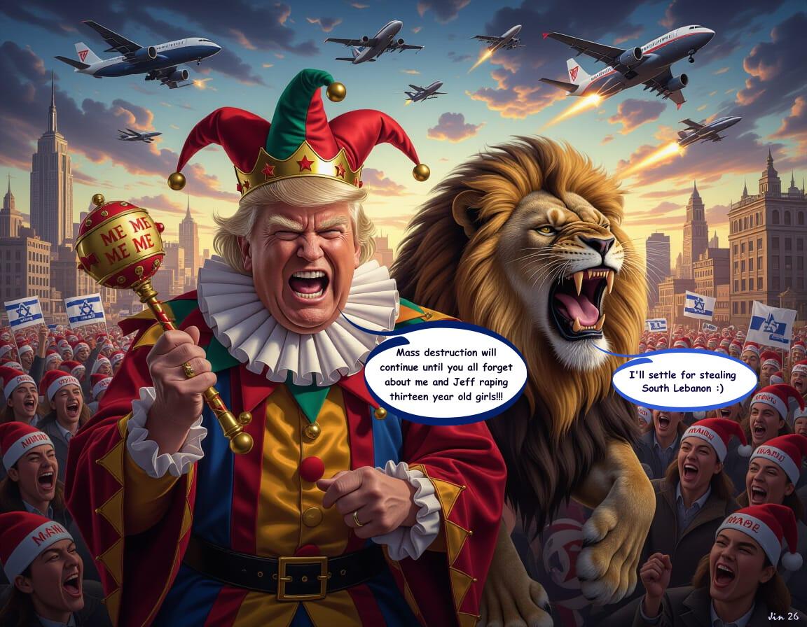 Epstein Fool and Roaring Liar set out their demands. My cartoon for today #USFascism #IsraelFascism #Iran #Trumpolini #Netolini #AIart #AIcartoons