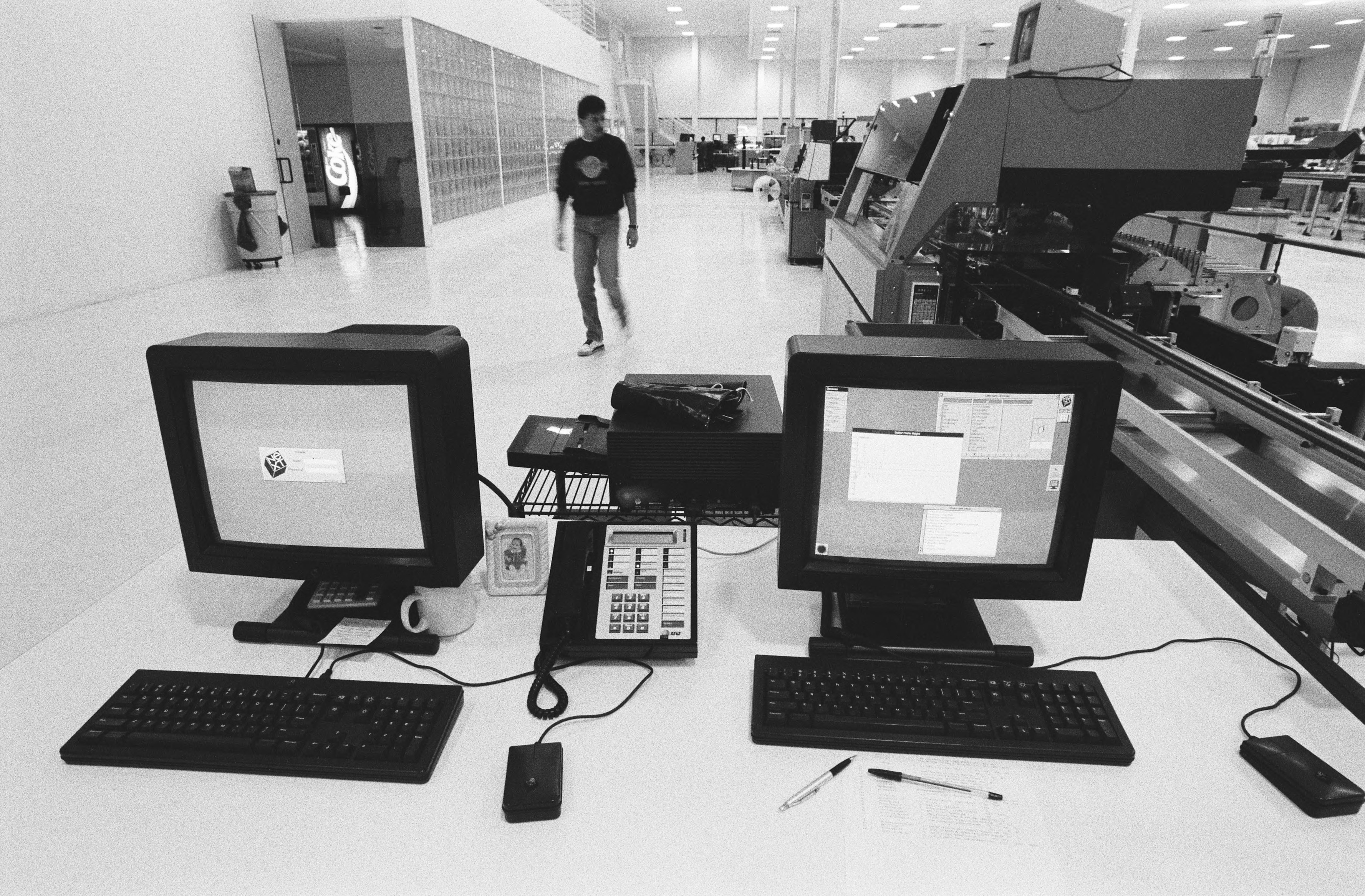 not sure how well known this already was, but i just stumbled upon an archive of super high-res 35mm photos of Newton and NeXT photos from the 90s, by photographer doug menuez. the vast majority are candid b+w snapshots of the newton and next teams as they grind through workdays and product launches