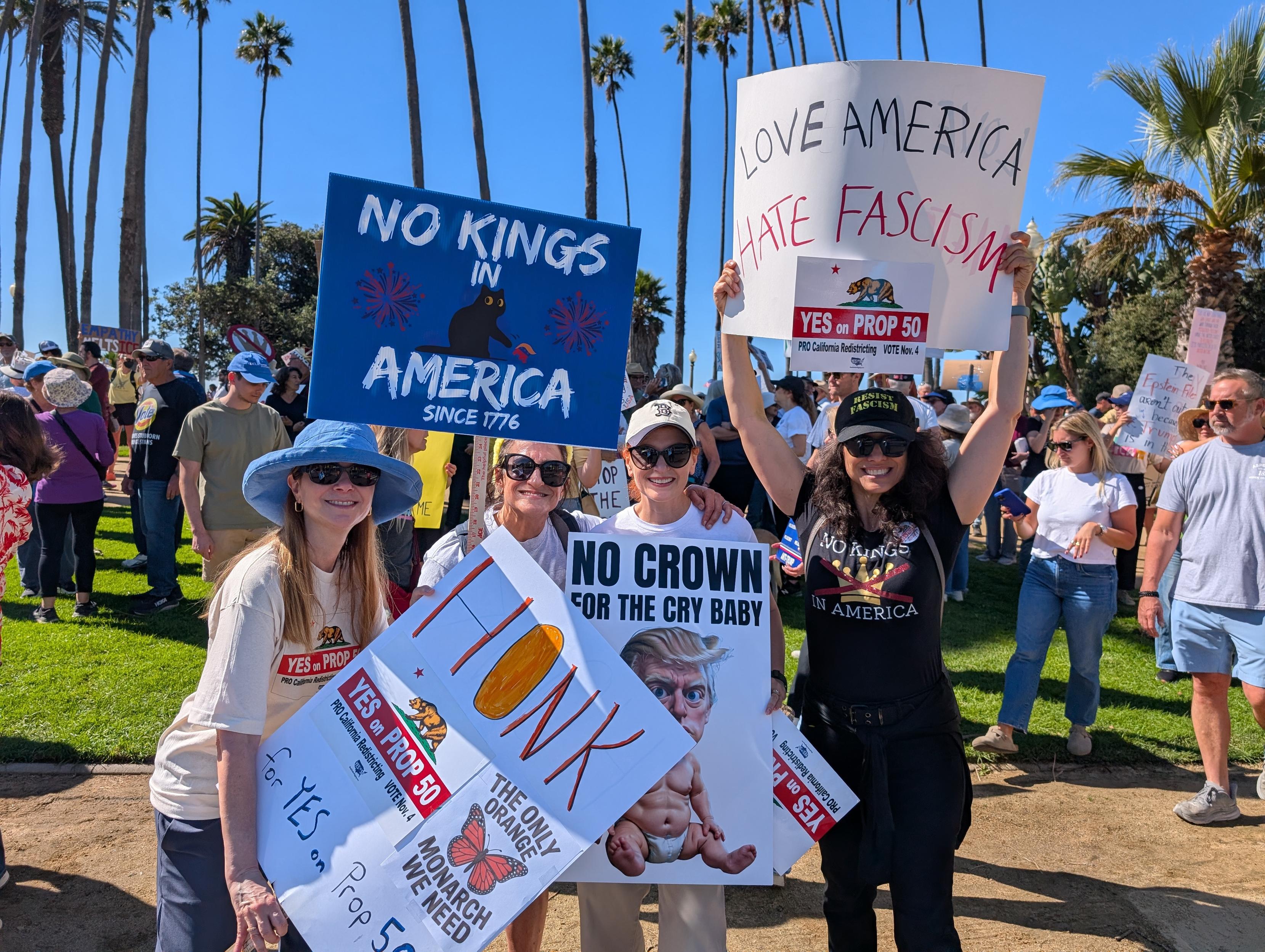 In Santa Monica for the #nokings March. My sign was last minute but the hat and shirt have gotten a lot of use.