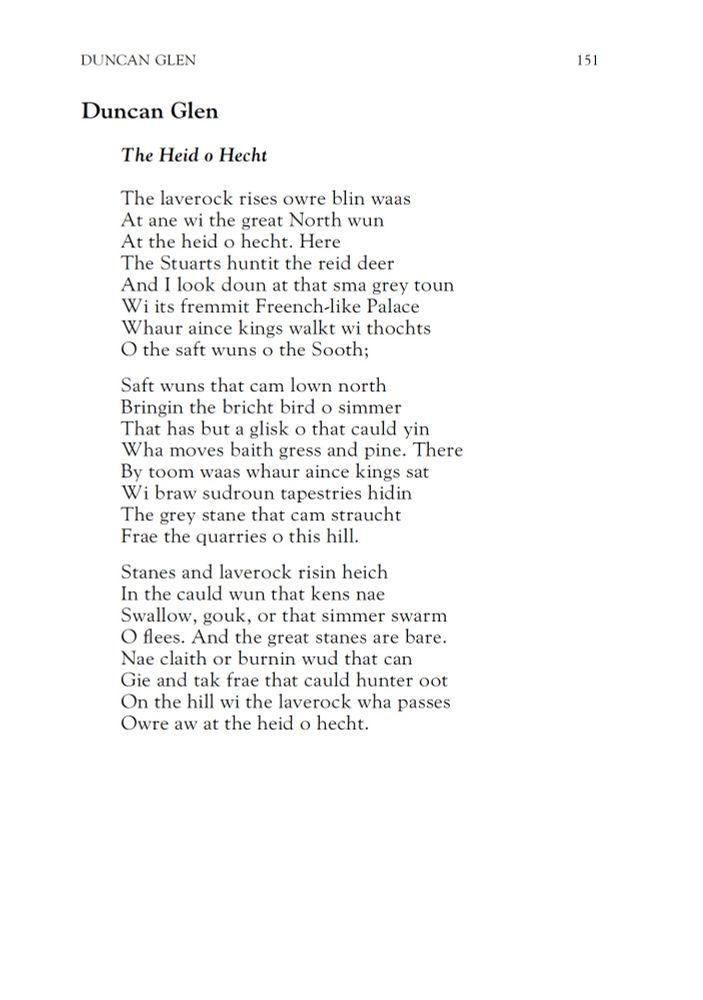 —“The Heid o Hecht” by Duncan Glen, born #OTD, 11 Jan, 1933. Starting out as an apprentice printer, he became a poet, designer, editor, publisher, & academic
