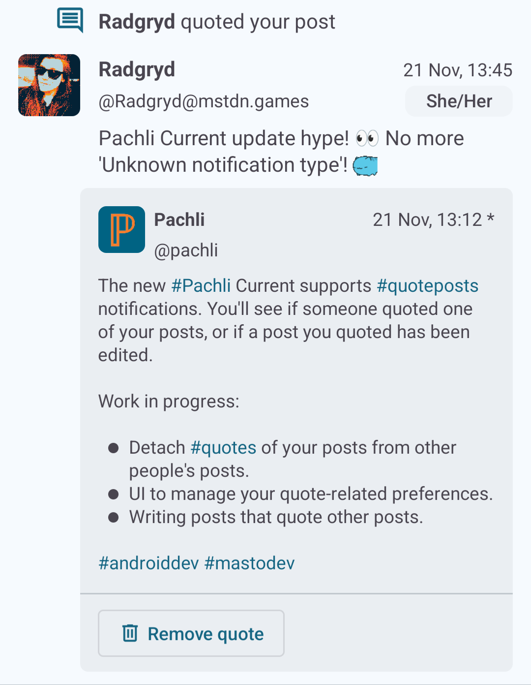 Coming to #Pachli Current in a few days - support for translating posts on your device.