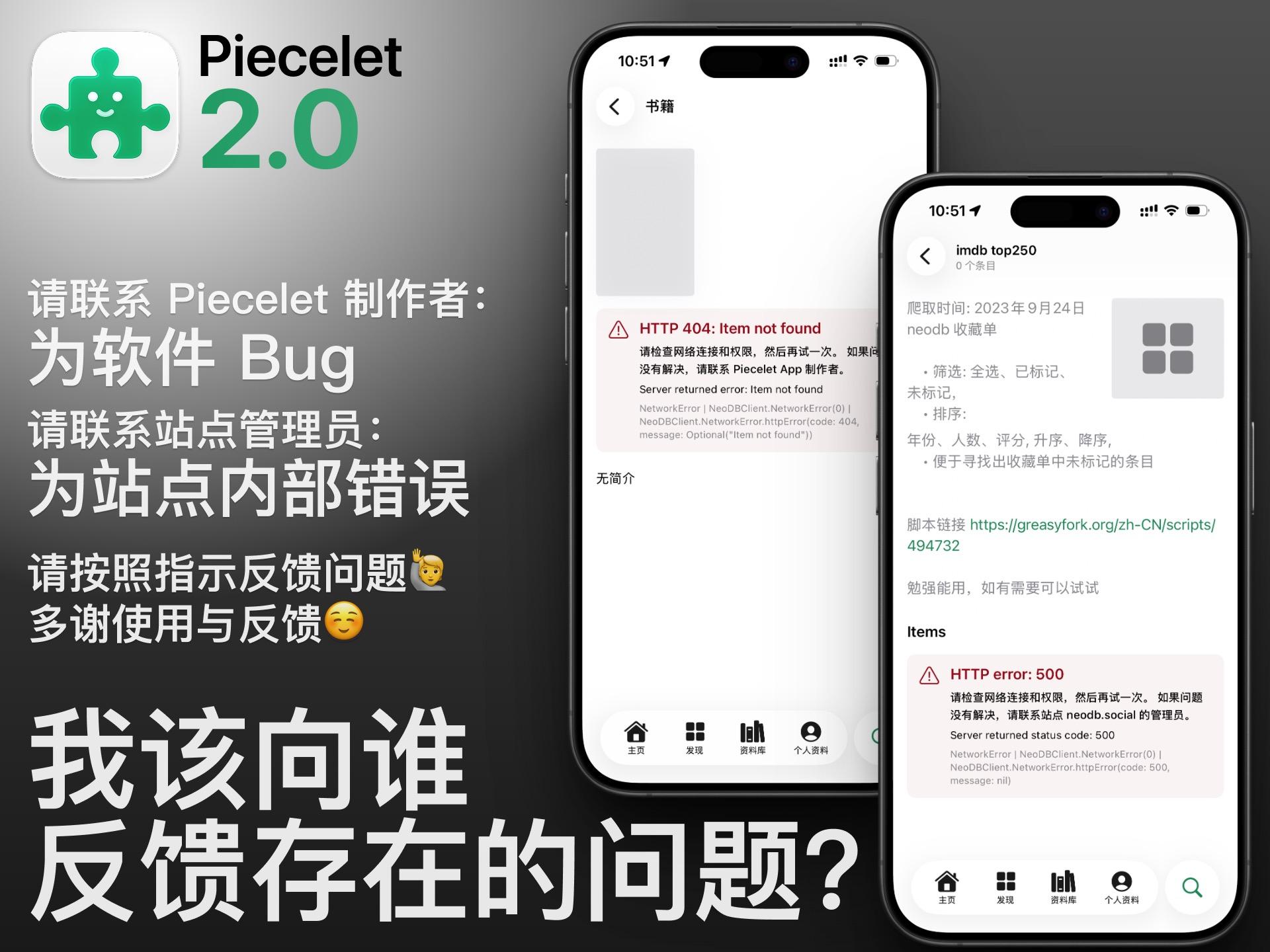 因为收到了一些关于站点问题的反馈(而我解决不了,因为站点不是由我运营🥹),所以在这里和友友们讲一下 Piecelet 2.0 应该如何正确反馈问题: