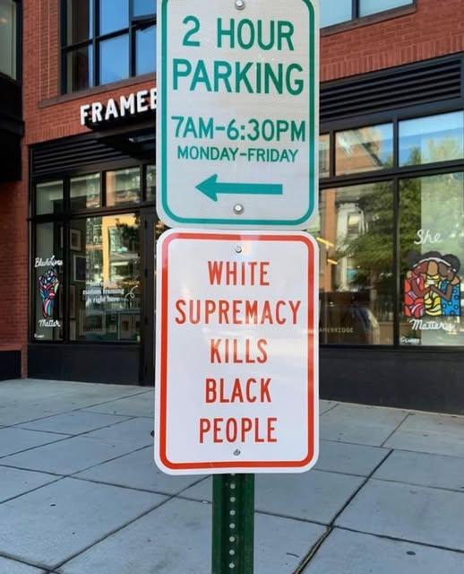 "White supremacy kills Black people. Sign seen on 14th street in Washington DC.