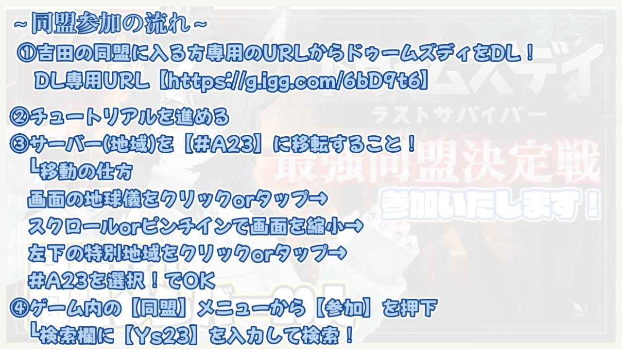 ①吉田の同盟に入る方専用のURLからドゥームズディをDL!