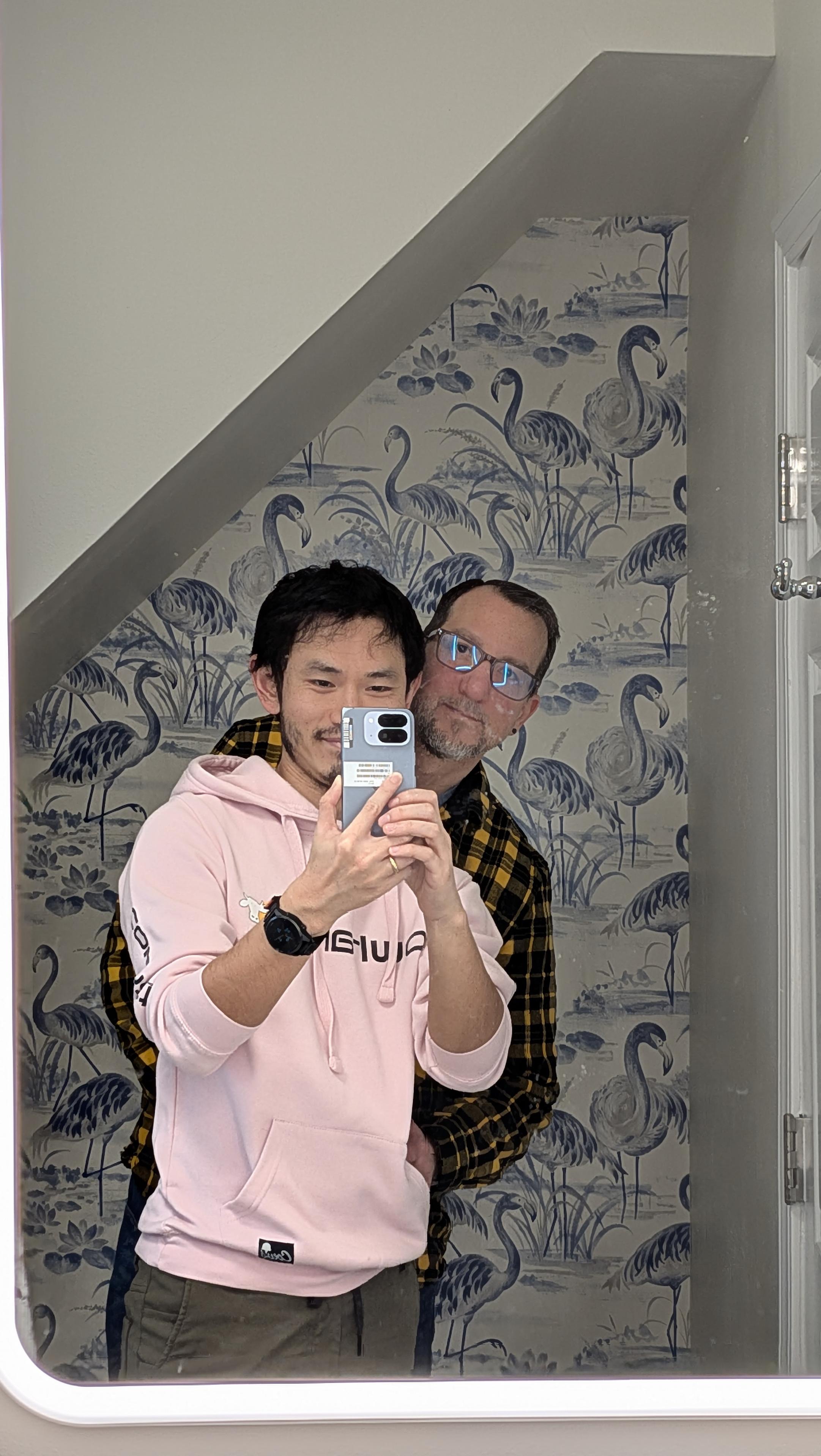 We applied this beautiful wallpaper to the bathroom in Ptown together and now all the gays who stay here in 2026 are gonna take selfies with that backdrop 🤣