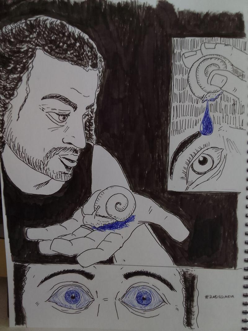 Esse foi difícil, mas a pouco tempo eu vi o filme "O último azul", e lá aparece o caracol da baba azul. Ele solta essa gosminha azul que se você passar nos olhos te permite ver o futuro. Fica aí a dica de cinema também. #rabisquarta