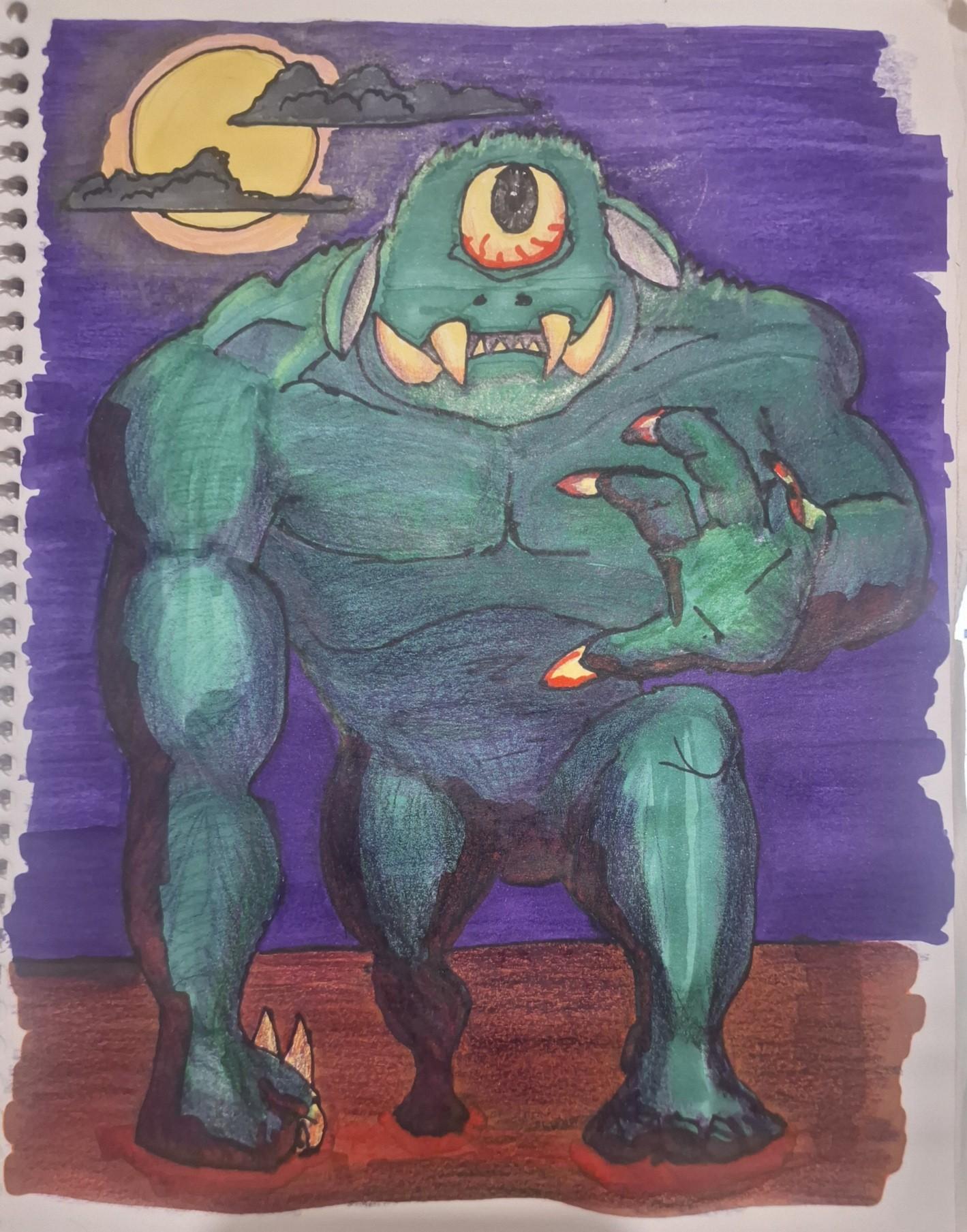 um quibungo agachado para o #rabisquarta de dia das bruxas/saci