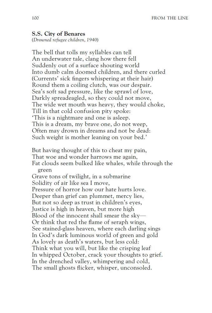 —“S.S. City of Benares”, by George Sutherland Fraser (1915–1980) – born #OTD, 8 Nov.