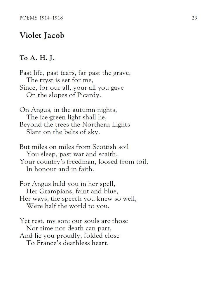 Violet Jacob’s only son, Harry, was killed at the Battle of the Somme on 16 July 1916, aged 20
