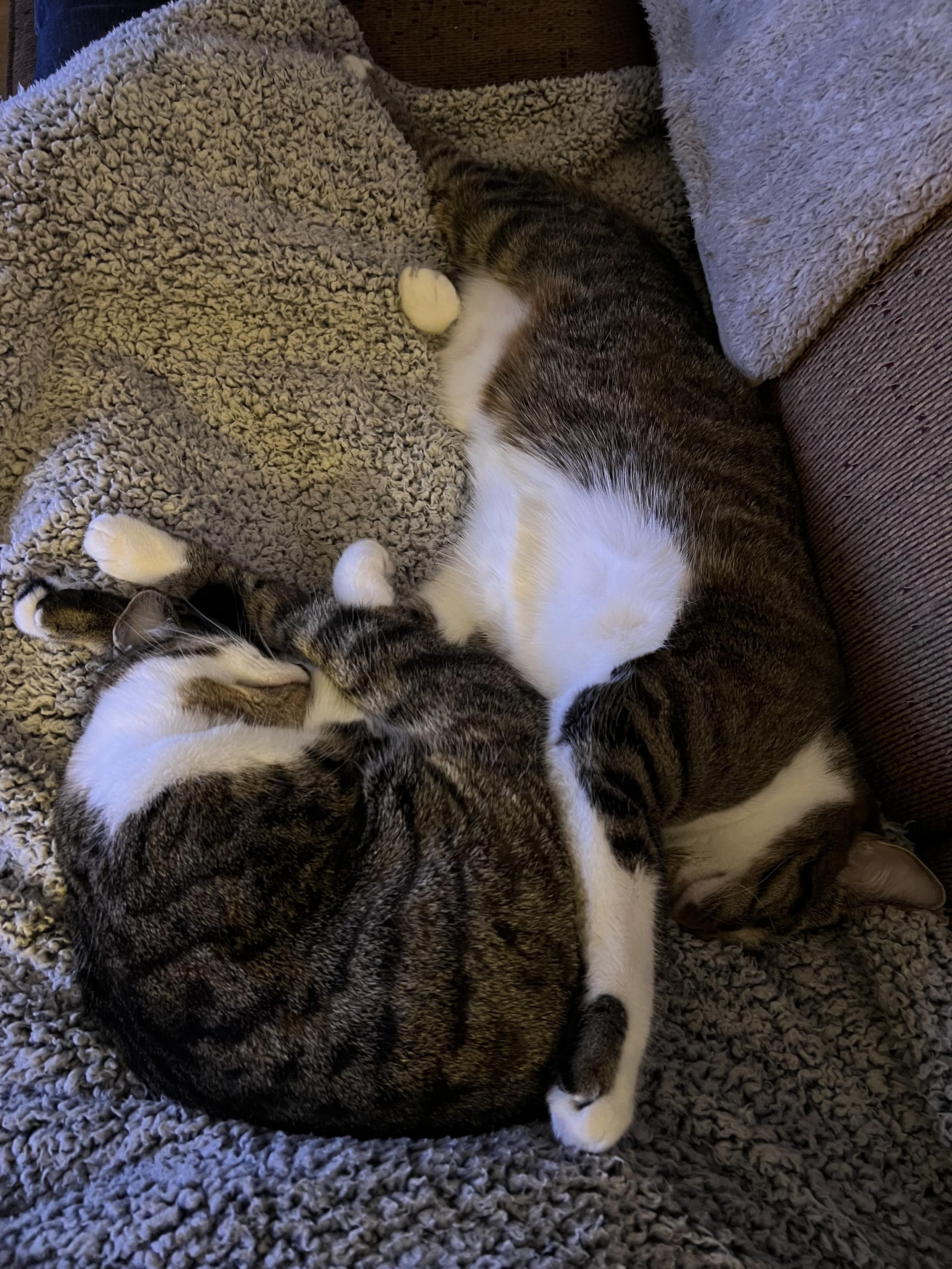 The goons leaning in to the wee hours of this #Caturday morning. #CatsOfMastodon #RipleyAndJonesy