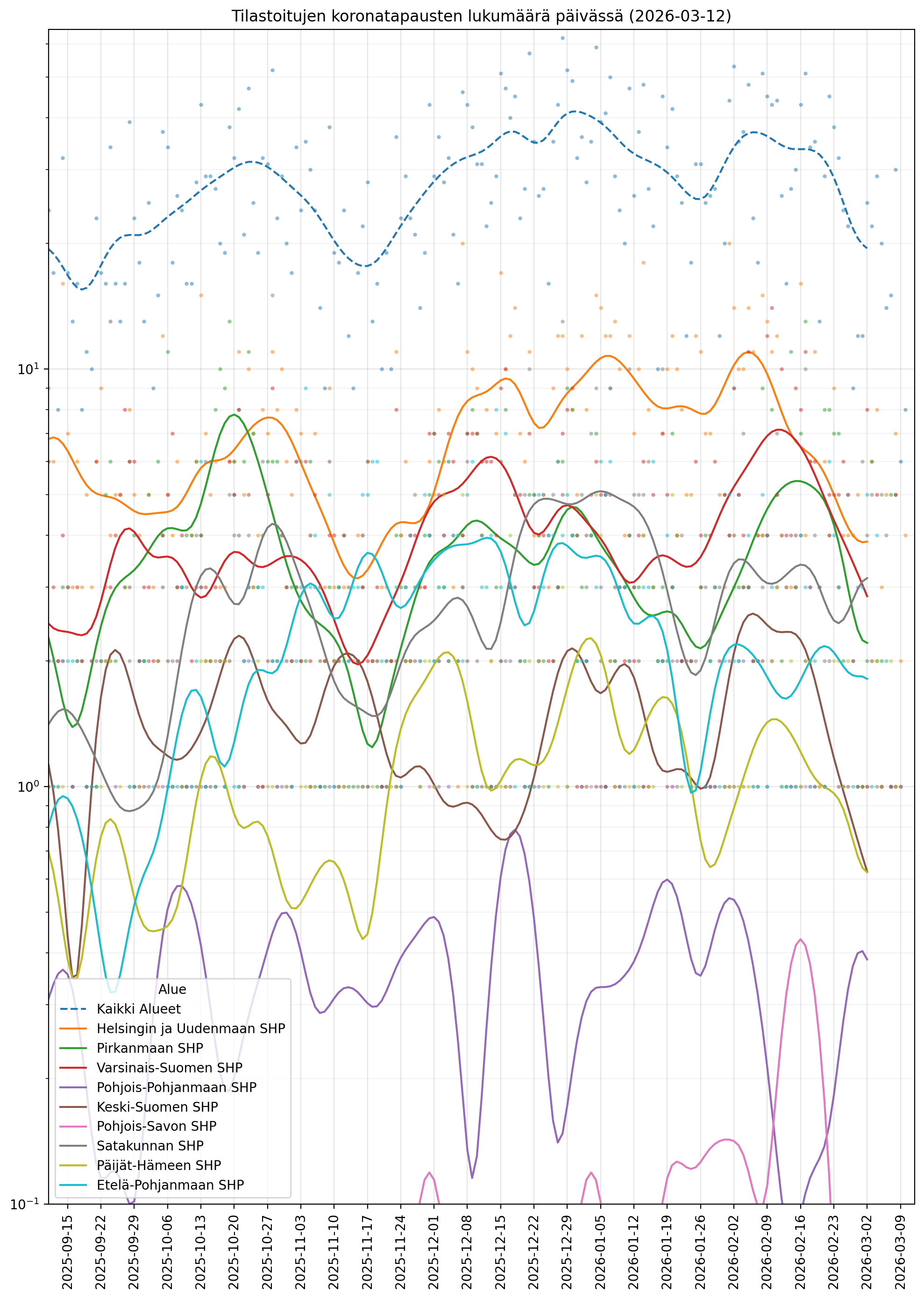 TÀllÀ viikolla (viikko 12) julkaistut koronatapaukset ja sairaaladata.