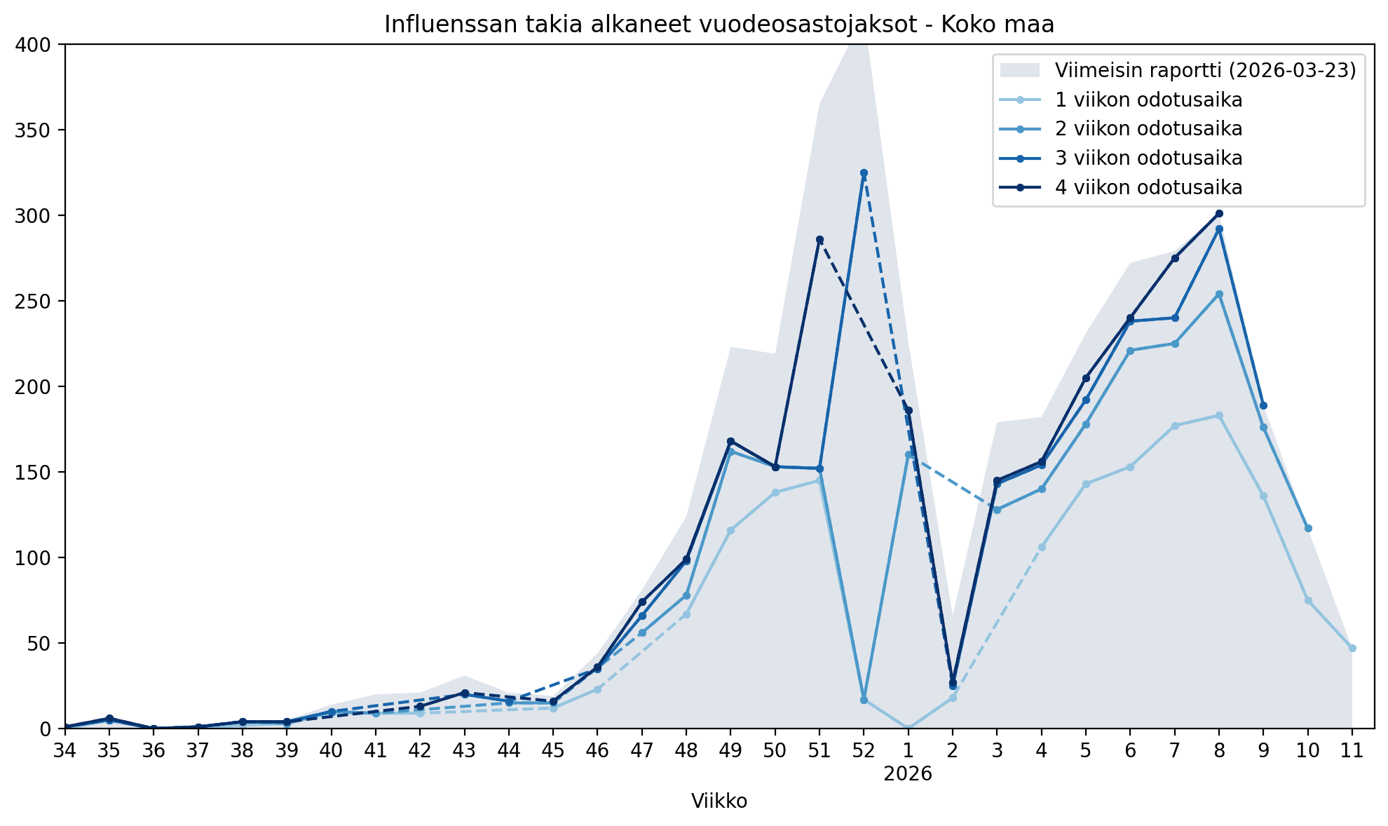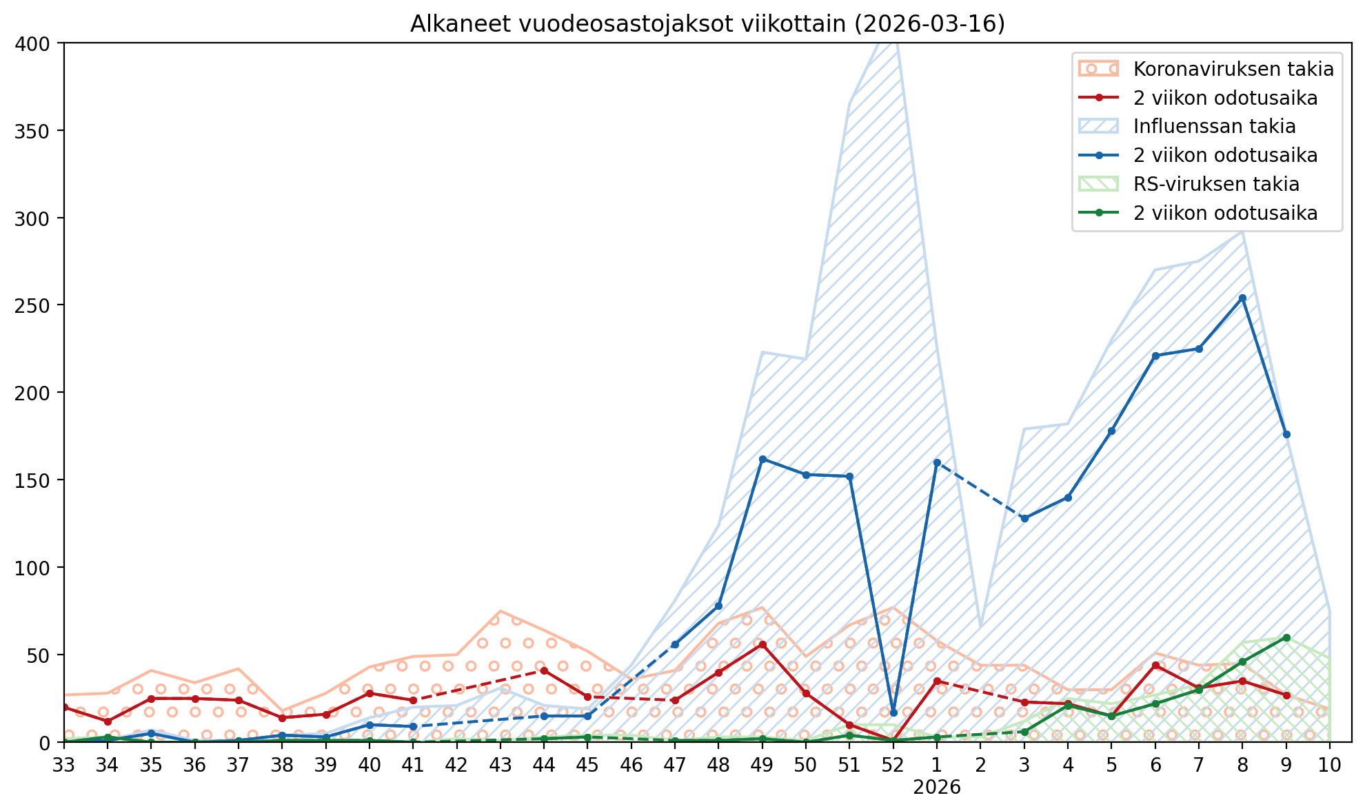Influenssan takia alkaneet vuodeosastojaksot ovat olleet yhÀ kasvussa. Koronaepidemian suunta on epÀselvÀ, etenkin kun huomioidaan sairaaladatan hÀiriöt.