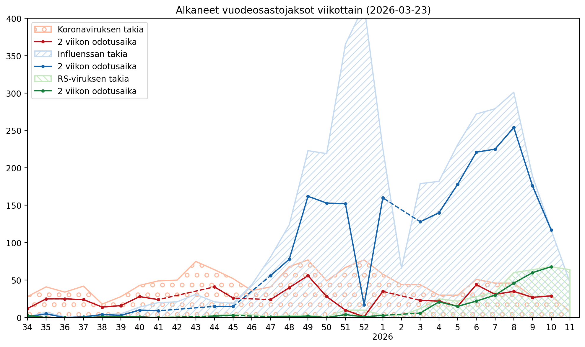 Vuodeosastojaksoissa RSV on ohittanut koronan. Influenssaa on ollut edelleen runsaasti.