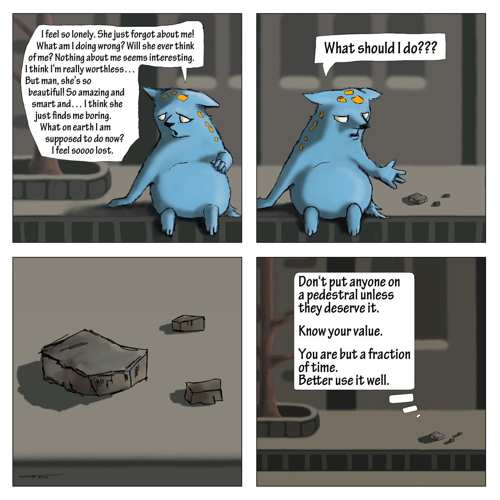 This is my oc, Lusstoni. I haven't drawn him since 2021 and the first thing he does when it's finally his turn is contemplating his poor life choices, oh well.