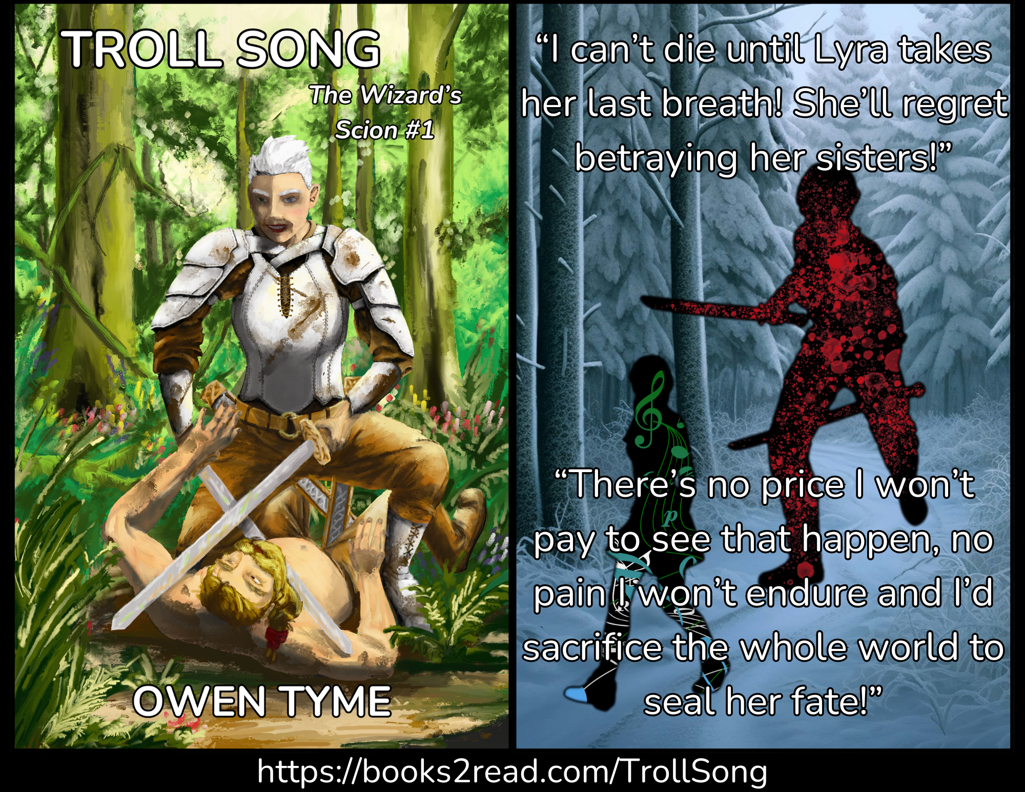 <p>Ebook and paperback: <a href="https://books2read.com/TrollSong" rel="nofollow"><span class="invisible">https://</span>books2read.com/TrollSong</a></p><p>Having an abusive assassin for a sister was bad enough, but when Lyra’s older sister, Nicole, becomes obsessed with killing the teenage troll, her life becomes a special kind of nightmare. Will she escape, or become just another victim of the unstoppable woman?</p><p><span class="h-card"><a href="https://fedigroups.social/@bookstodon" class="u-url mention" rel="nofollow noopener noreferrer" target="_blank">@<span>bookstodon</span></a></span><br><a href="/tags/author/" rel="tag">#author</a> <a href="/tags/indieauthor/" rel="tag">#indieauthor</a> <a href="/tags/writing/" rel="tag">#writing</a> <a href="/tags/fantasy/" rel="tag">#fantasy</a> <a href="/tags/scifi/" rel="tag">#scifi</a> <a href="/tags/sciencefiction/" rel="tag">#sciencefiction</a> <a href="/tags/sff/" rel="tag">#sff</a> <a href="/tags/sciencefantasy/" rel="tag">#sciencefantasy</a> <a href="/tags/scifi/" rel="tag">#scifi</a> <a href="/tags/actionadventure/" rel="tag">#actionadventure</a> <a href="/tags/fiction/" rel="tag">#fiction</a> <a href="/tags/books/" rel="tag">#books</a></p>