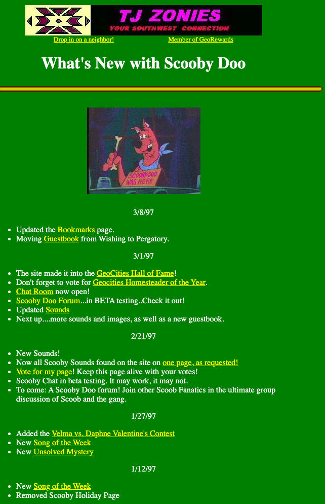 Here's an early version from 1997 - a geocities page. I can't tell you how fun it was to build this, and the community that was created around the site.