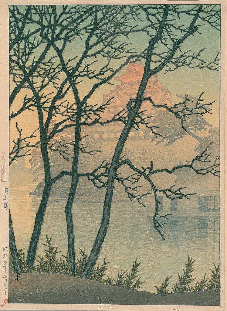 Morning at Okayama Castle, by Kawase Hasui (#KawaseHasui), 1955.