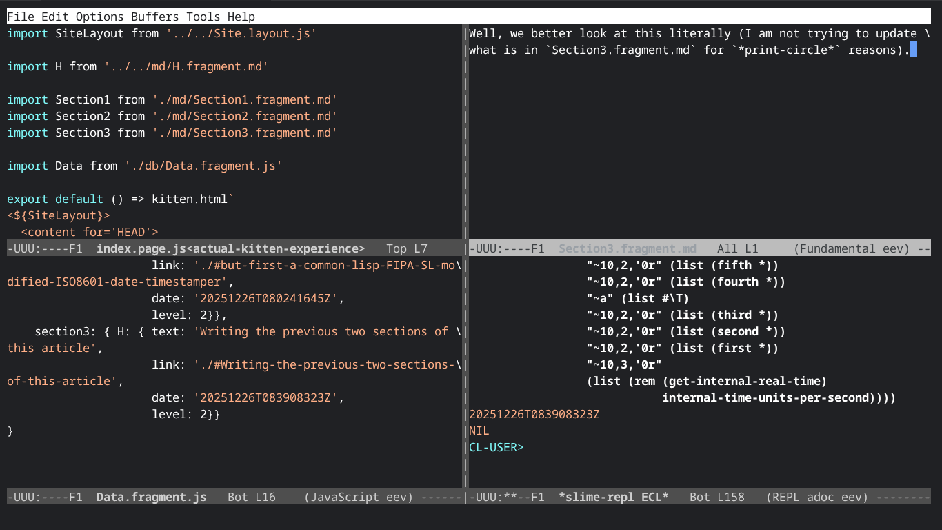 Eev (and lisp secret alien technology) made it /really/ easy and convenient to generate a kitten matching @aral's Tutorial 2: dynamic pages, https://kitten.small-web.org/tutorials/dynamic-pages/ serve it and visit it inside emacs (just press F8 over and over again and it happens on its own).