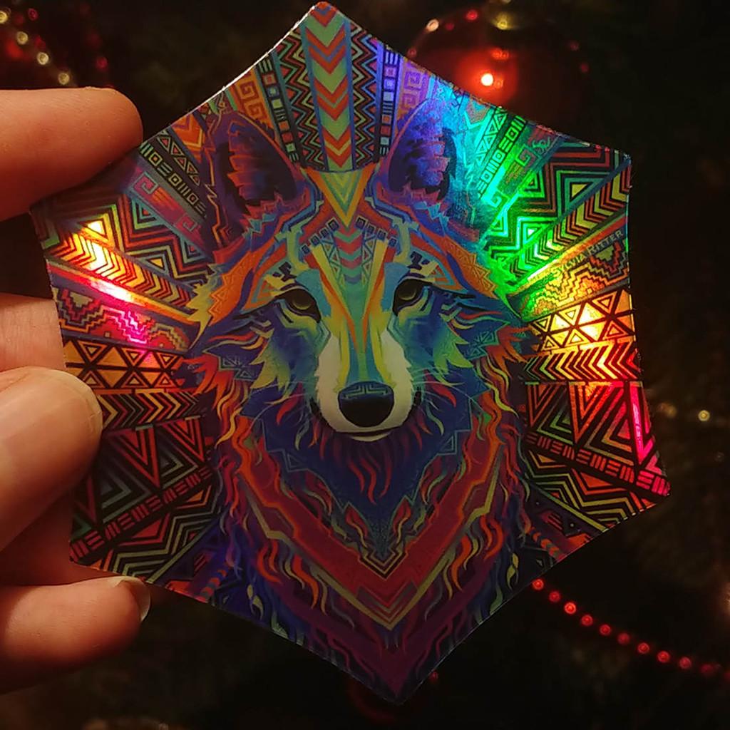 ⏰ Wakeful times for the Wakeful Wolf as a holographic sticker! 🐺 🌈 🌟 https://shop.sylvia-ritter.com/collections/stickers/products/wakeful-wolf-holographic-sticker