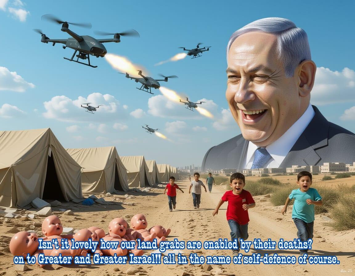 #Israel's colonial 'logic' of expansionism is a death cult. Any resistance to 77 years of genocide of Palestinians is hasbarized to justify more genocide. #StopIsrael #AIart #Palestine #GazaGenocide