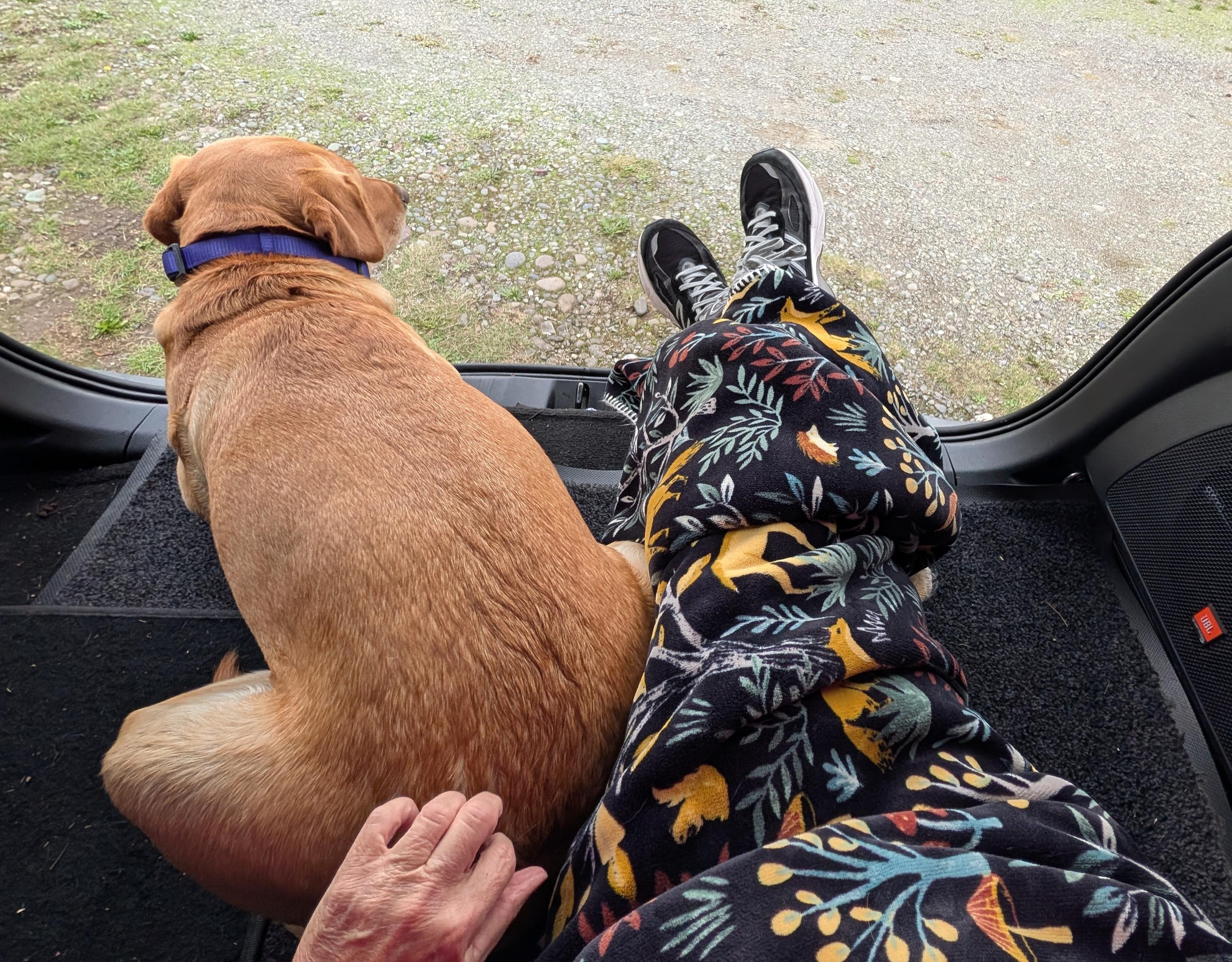 When I needed a minute from a a family of seven I would hide out under the rhododendrons. I had blankets, a pillow and some favorite books to keep me company. Now sixty years later I open the back of my car to snuggle with a blanket and read. It feels the same but different.
