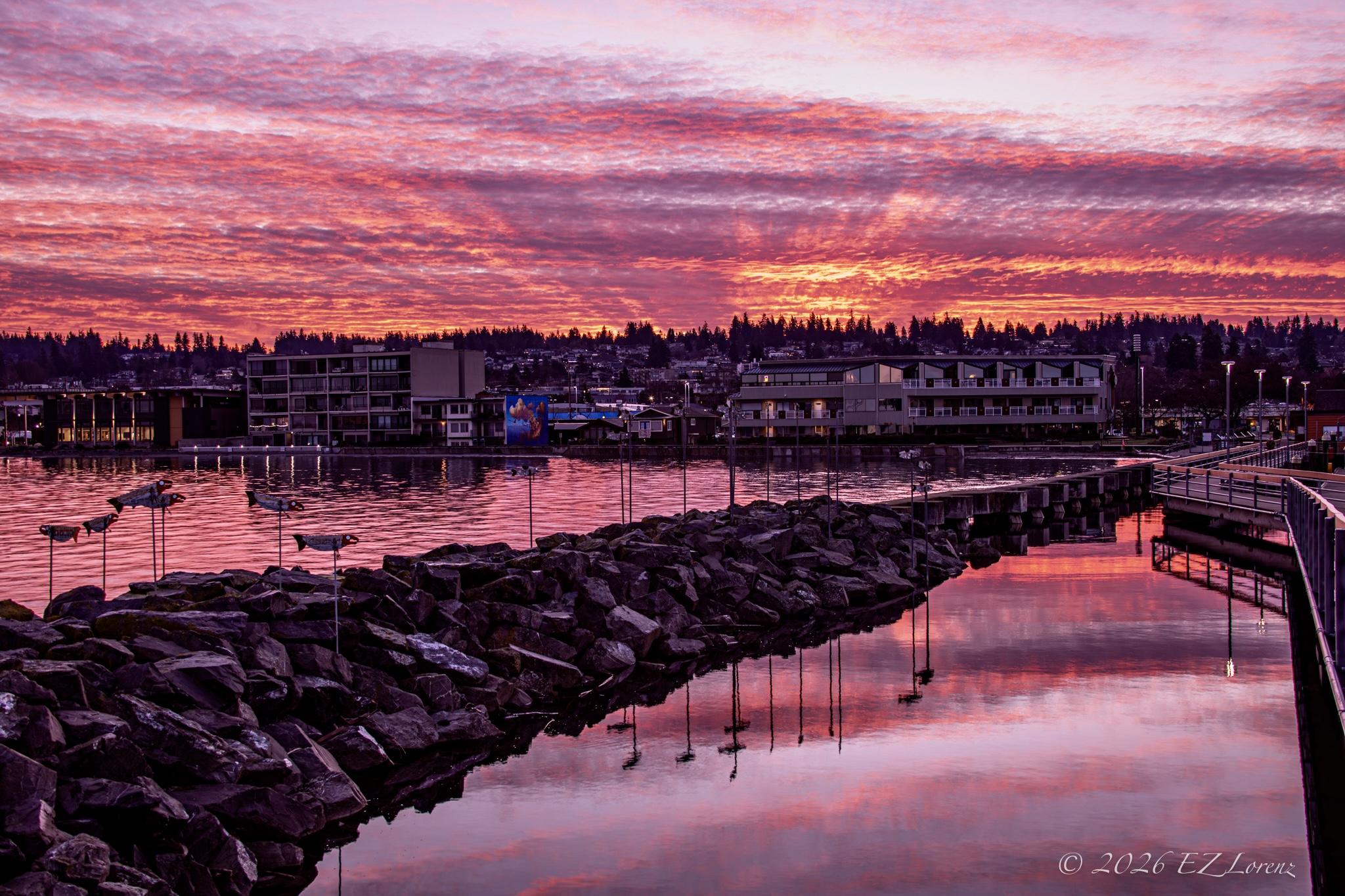 #Washington #PNW #Sunrise #Ferry #Reflection #Photo #Cars #Traveling #View #PhotoOfTheDay #Red #Winter #December