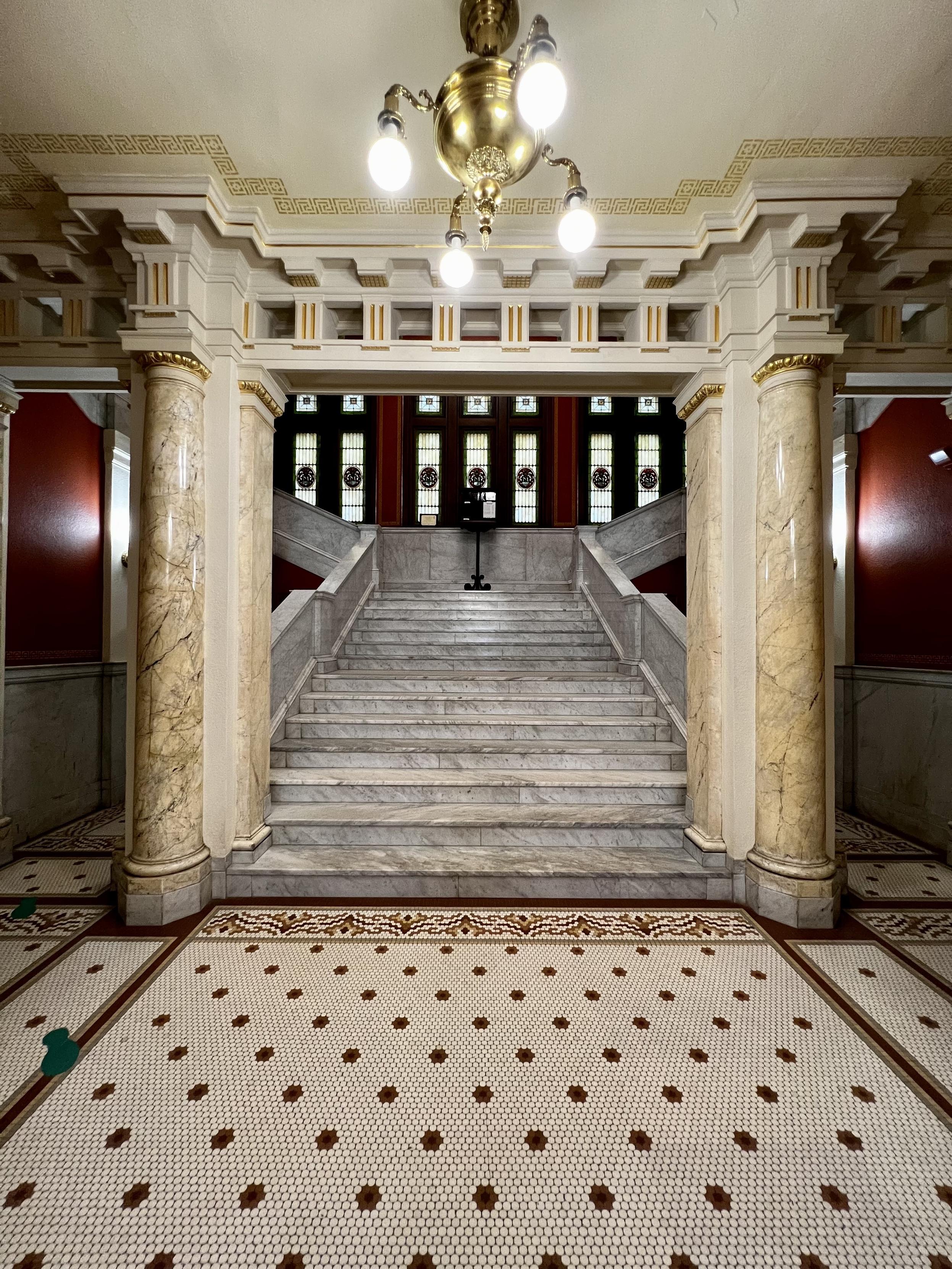Bonus - the photo is from inside the Marquette County Courthouse in Michigan. Some scenes from Anatomy of a Murder (1959 starring Jimmy Stewart and Lee Remick) were filmed here.