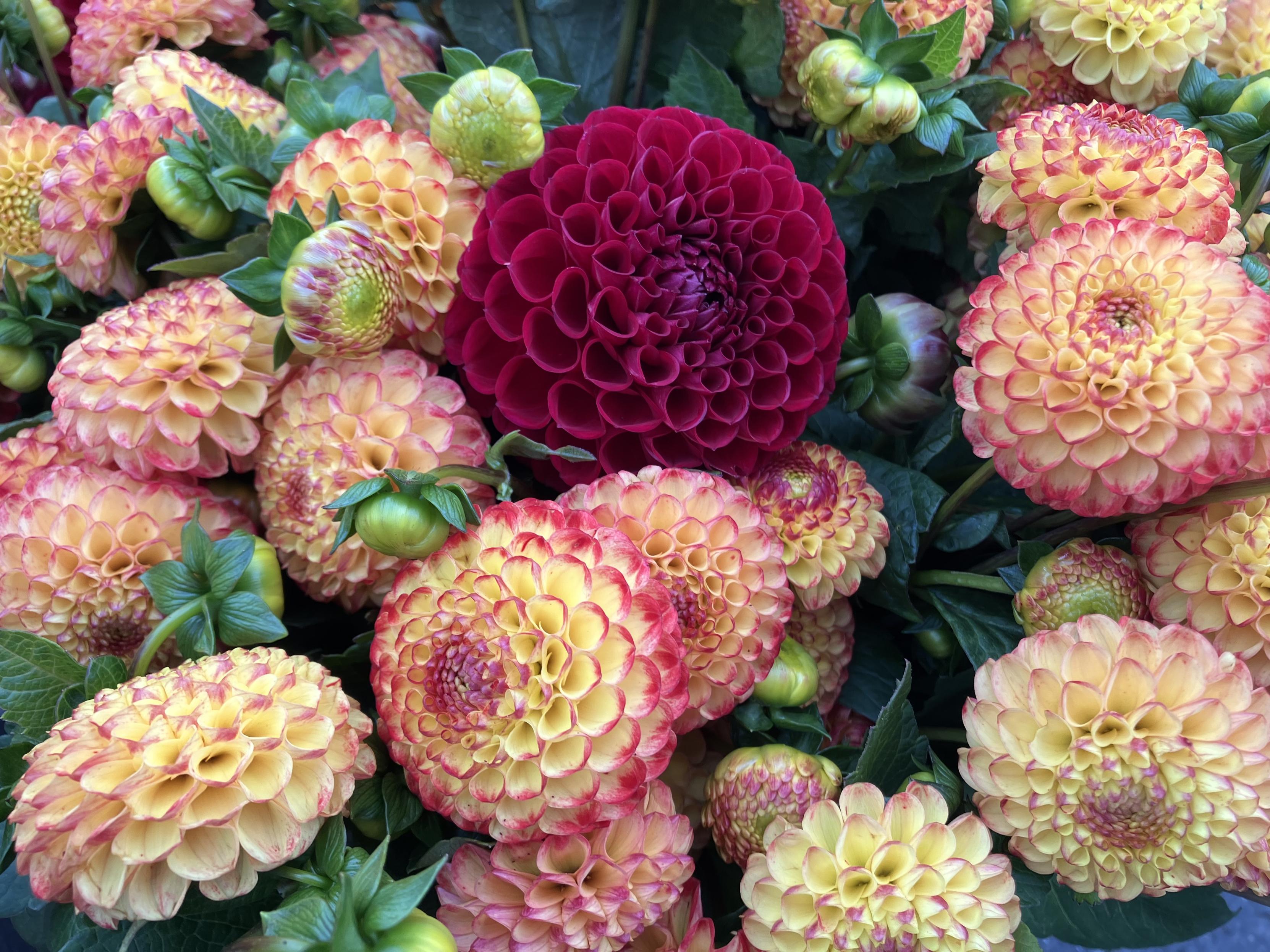 The flowers are still going strong at the farmers market. Have some dahlias!