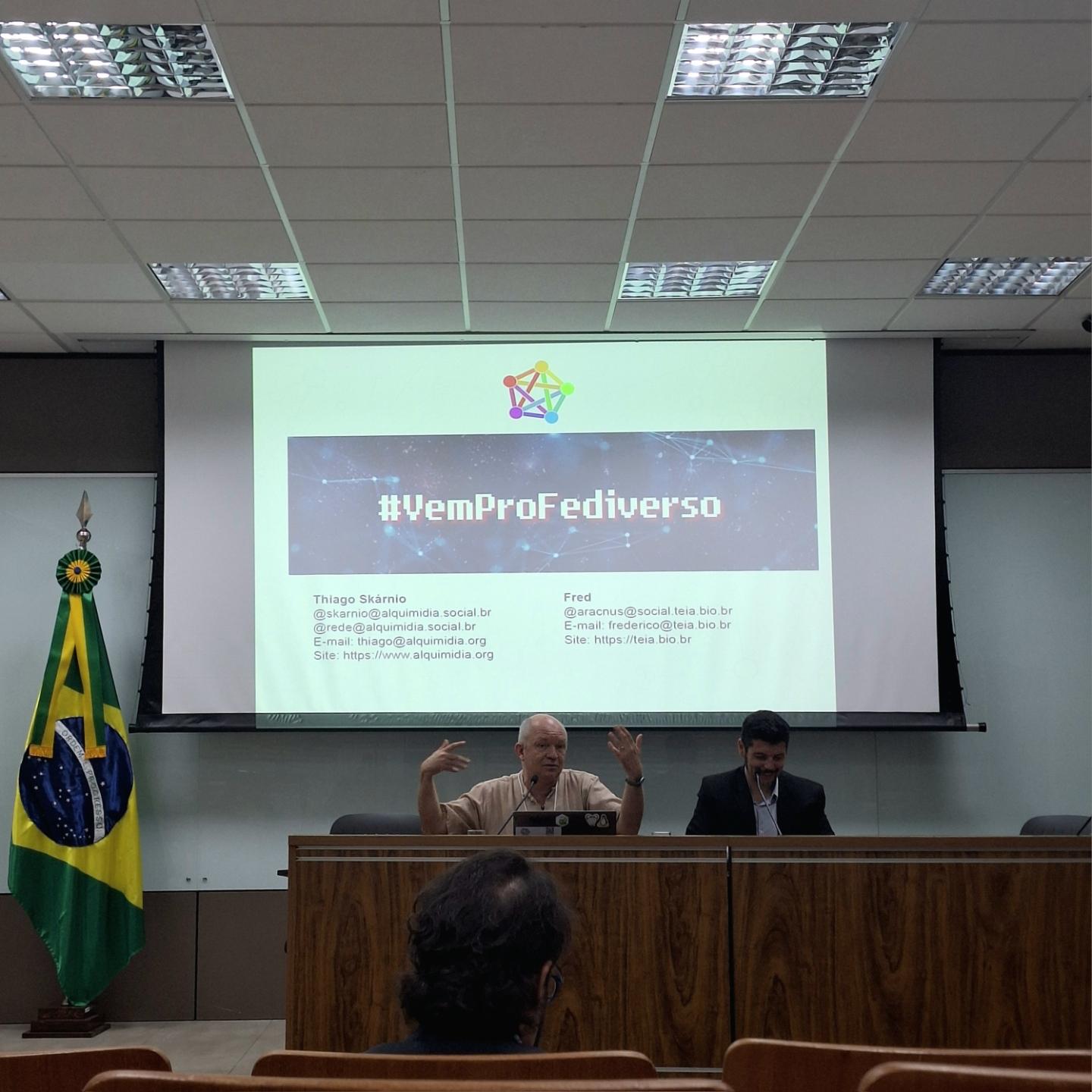 Vem pro Fediverso! Fred Guimarães e Thiago Skárnio explicando o que é a Web Social Aberta e o Fediverso.