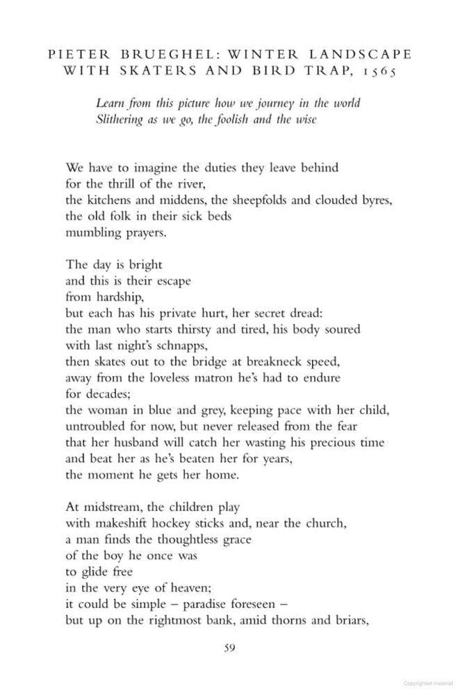 —John Burnside, “Pieter Brueghel: Winter Landscape with Skaters and a Bird Trap, 1565”
