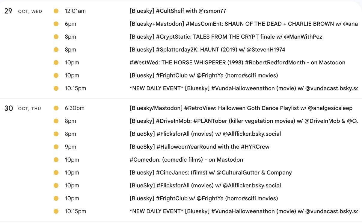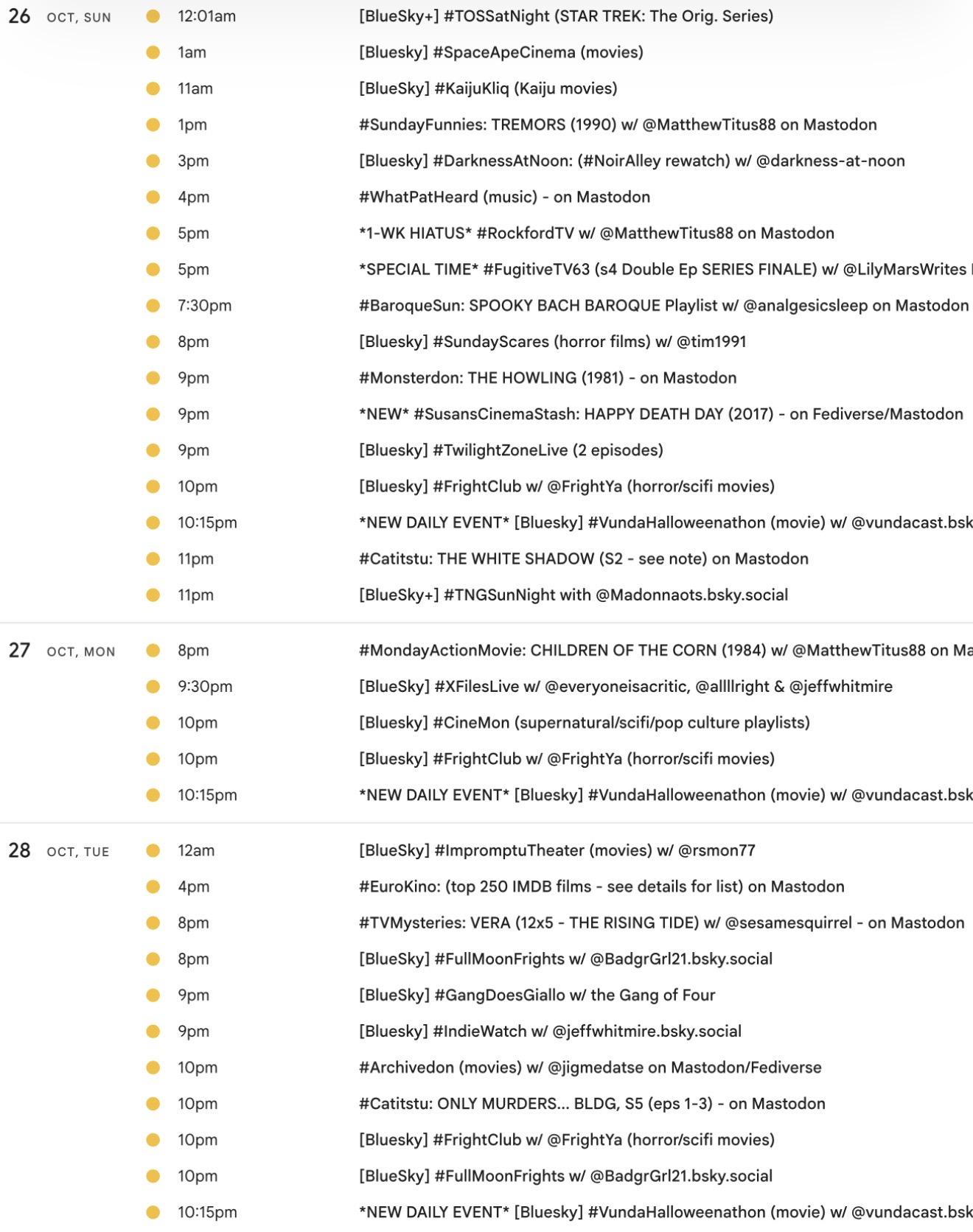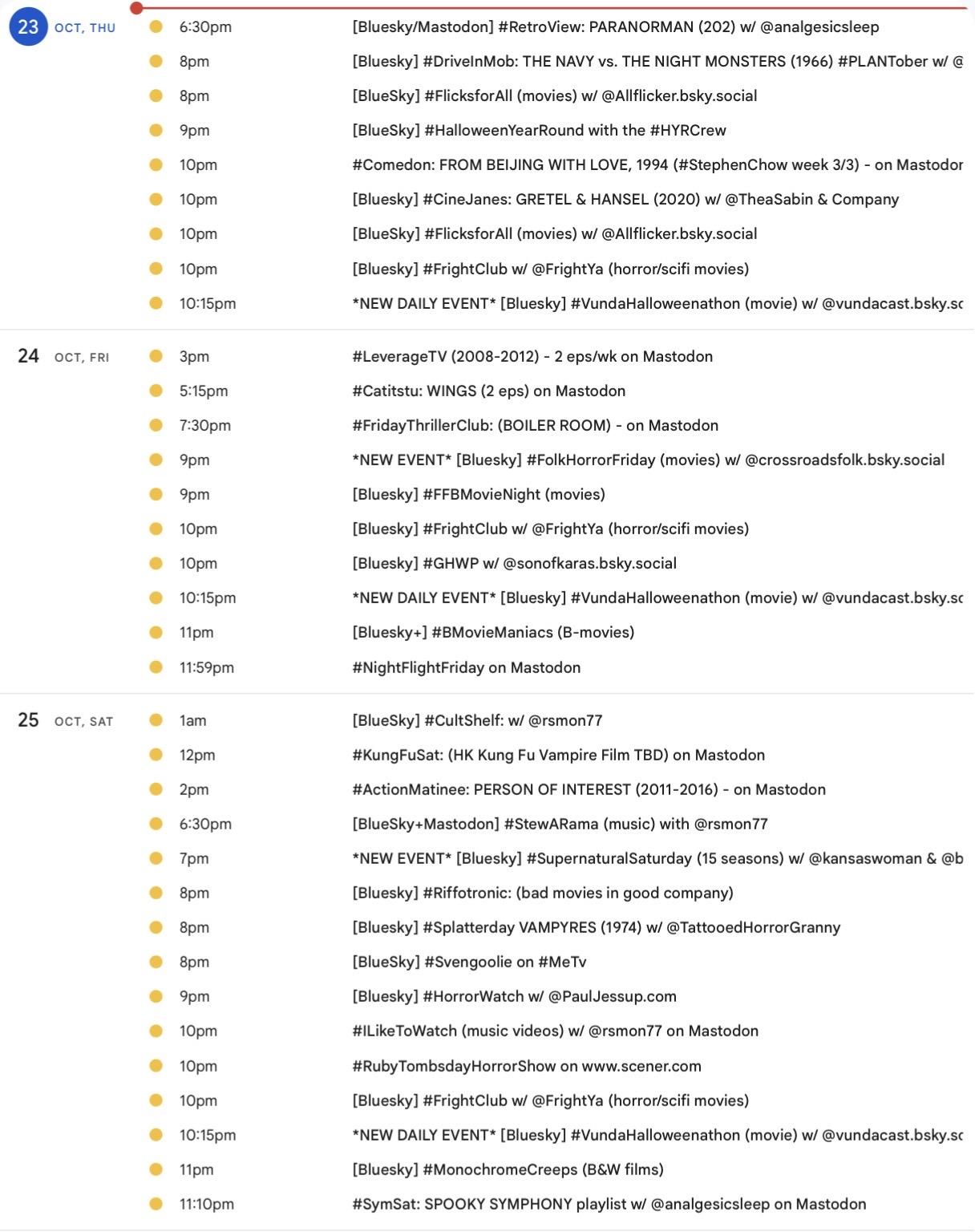 Here's the THU-THU 🐘 #Mastodon / #Fediverse #WatchPartyCalendar 📅 for Oct. 23-30, 2025🎃