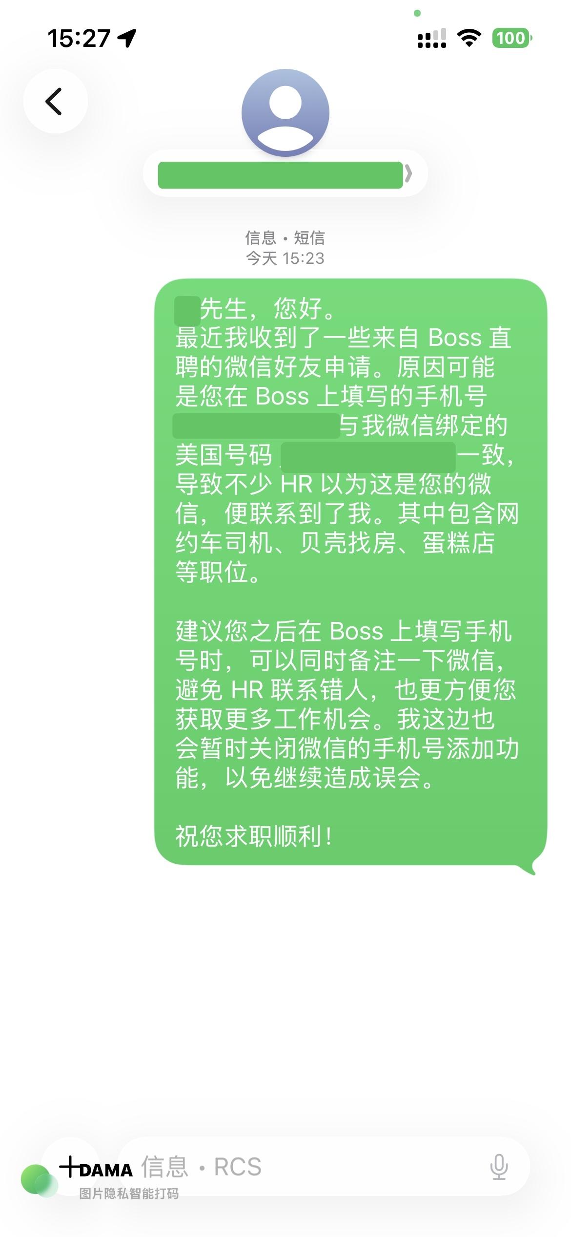 破案了,为什么不时就有一些陌生的hr加我,因为有人🇨🇳 手机号 和我 🇺🇸 手机号一样……