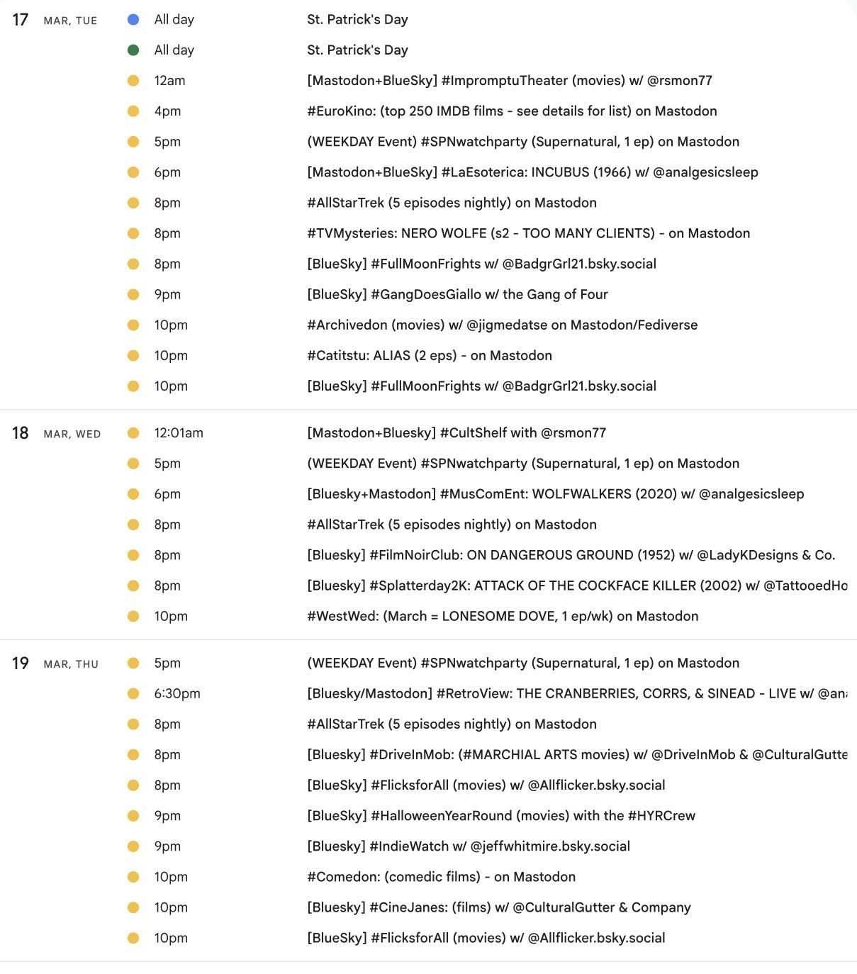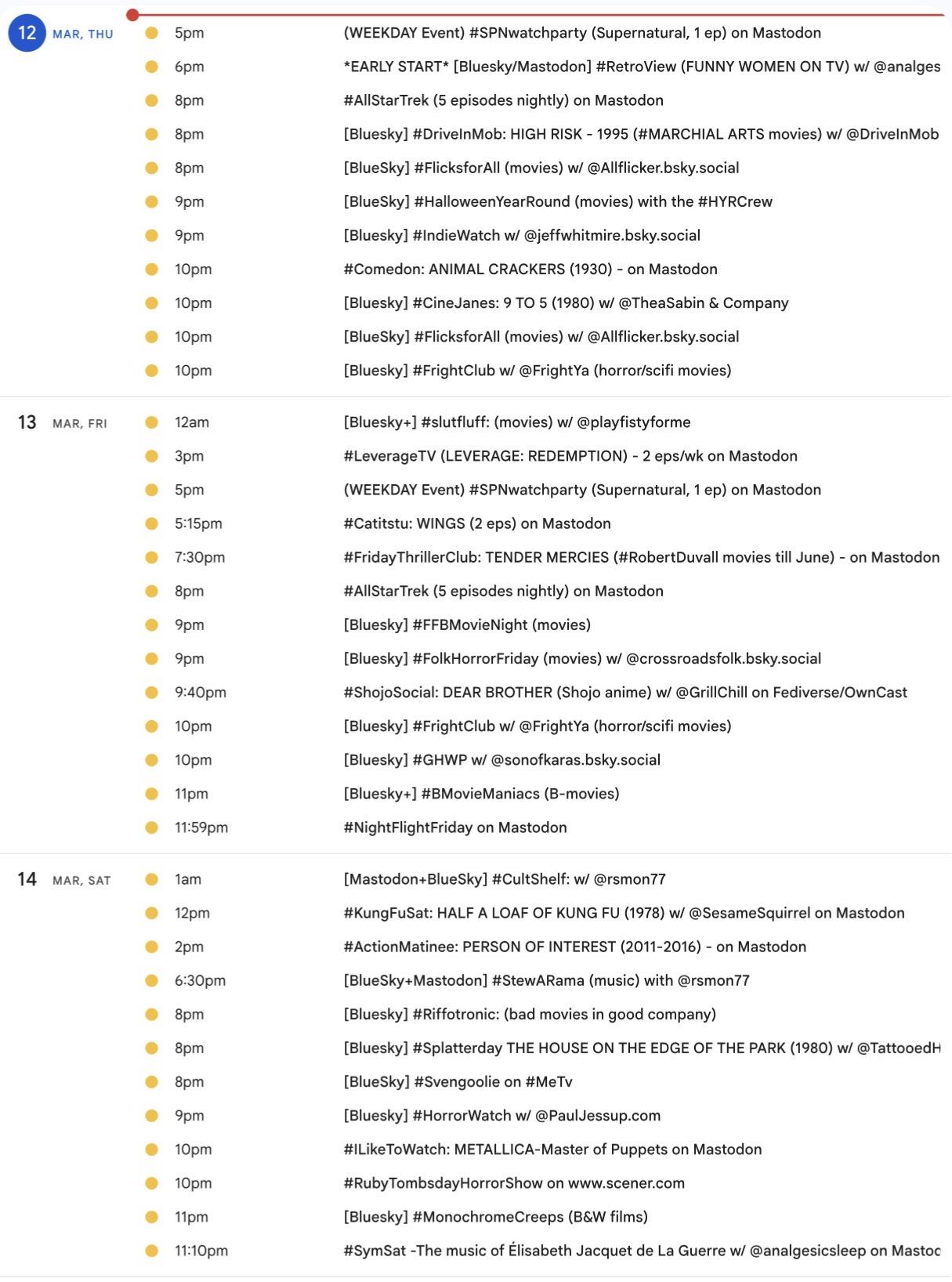 📺📅 It's time for the weekly #Mastodon/ #Fediverse #WatchPartyCalendar screencap