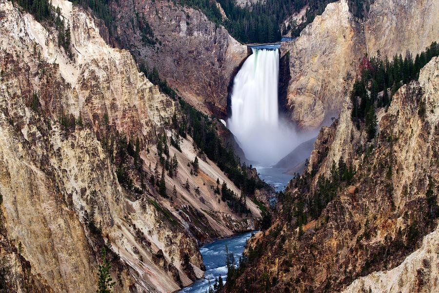 The Lower Yellowstone Falls is one of the many park highlights found in Yellowstone National Park. Here is a capture from one of the many overlooks of the Grand Canyon of Yellowstone. The river flows between the two yellow walls of the Grand Canyon of Yellowstone. It is because of these yellow walls that the park was named Yellowstone National Park.